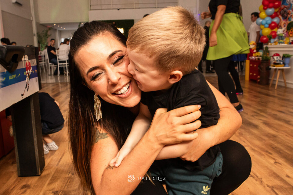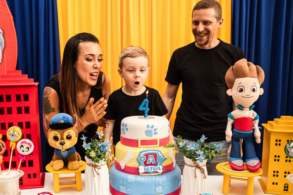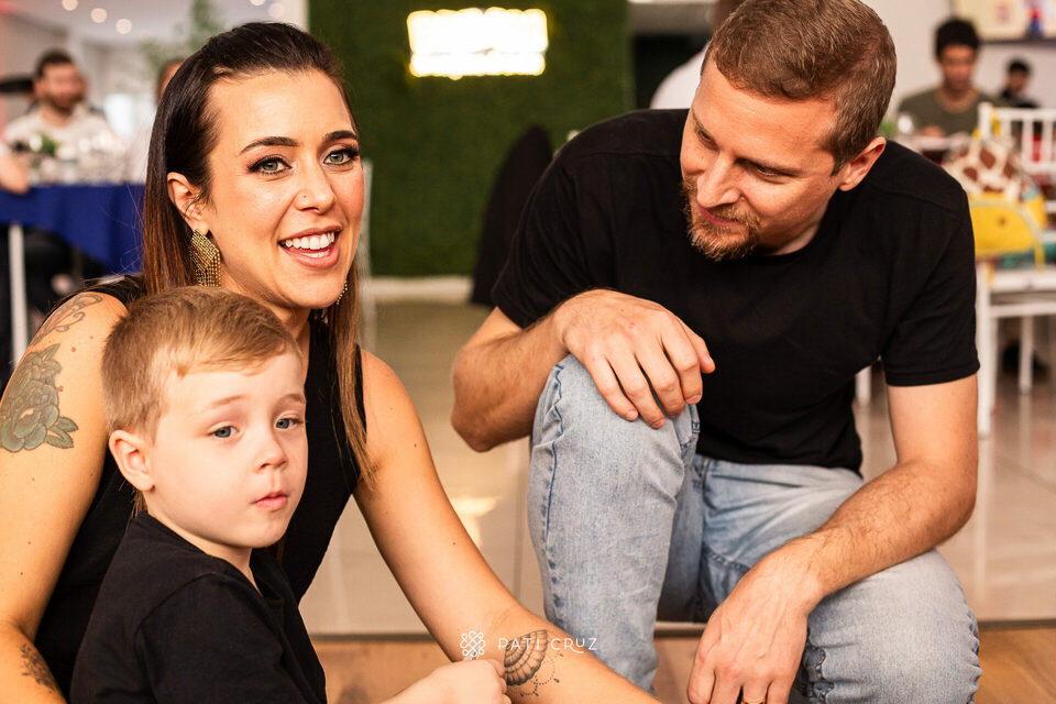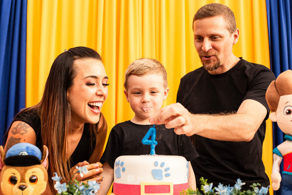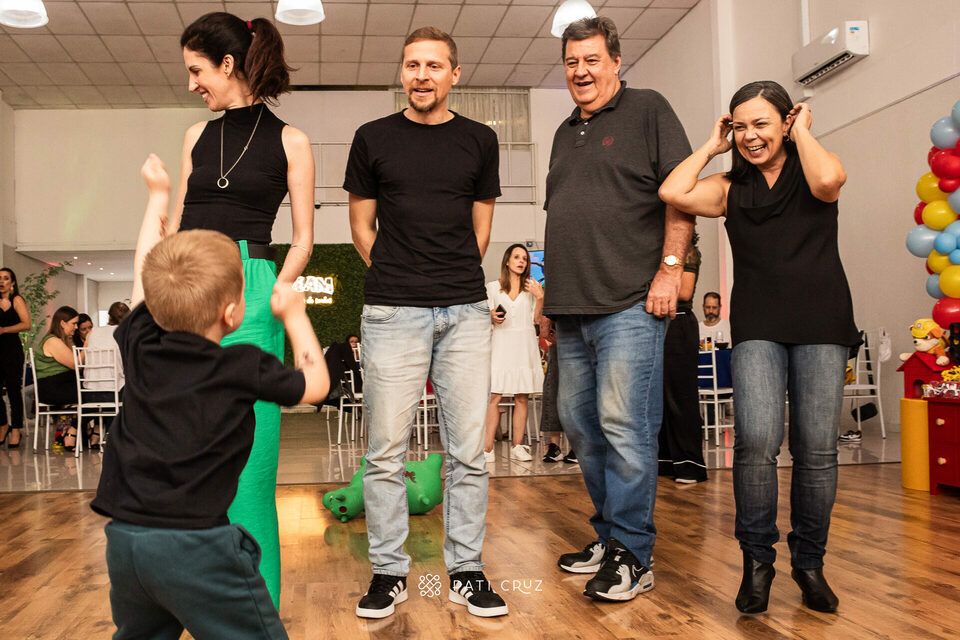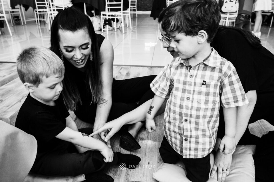 Ao som de acústicos e valvulados o pequeno roqueiro dançou, pulou deu cambalhotas e curtiu muito a sua música preferida, com direito a plateia dos familiares, que se divertiram assistindo a empolgação do pequeno. A hora da tatuagem foi compartilhada com amigos e com a mãe, que acompanhou o Leo, adicionando um patrulheiro às suas tatuagens. Na sequência, chegou o momento do parabéns, e então encerrei a minha participação na festa do Leo com a certeza dever cumprido