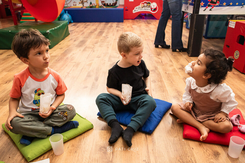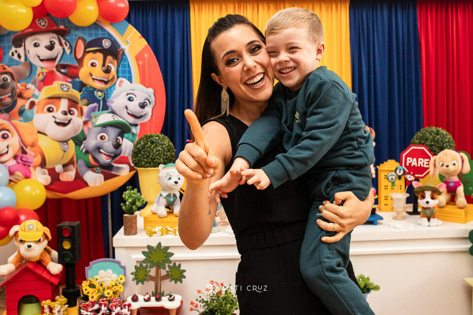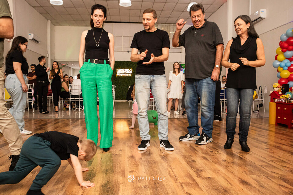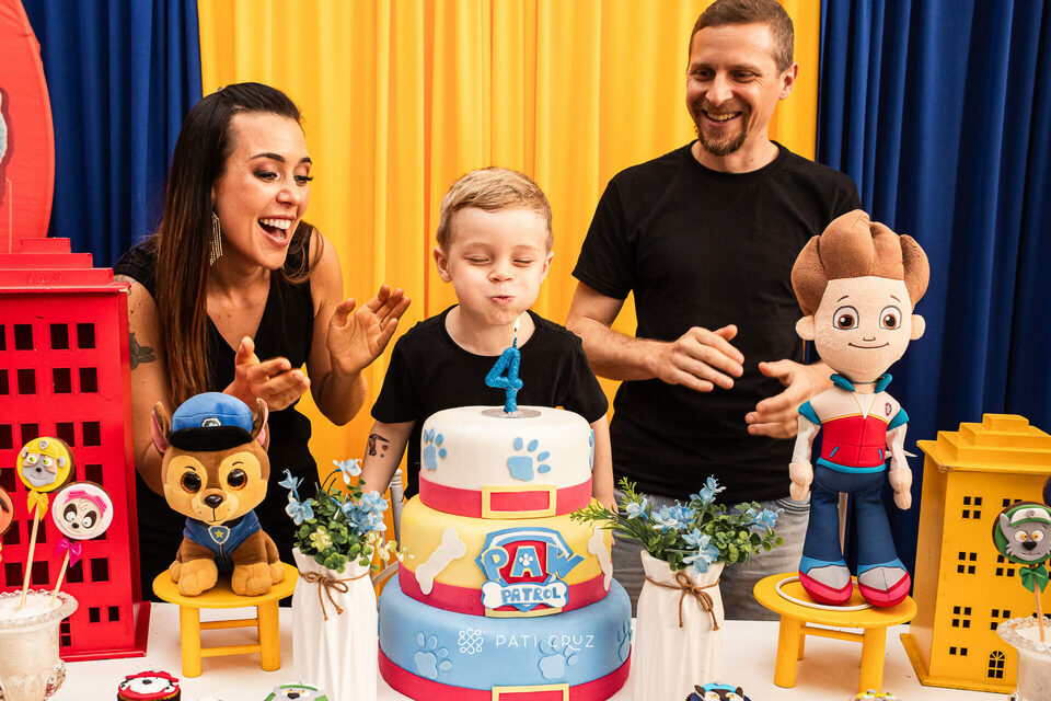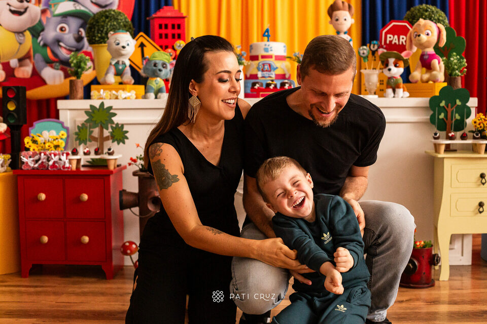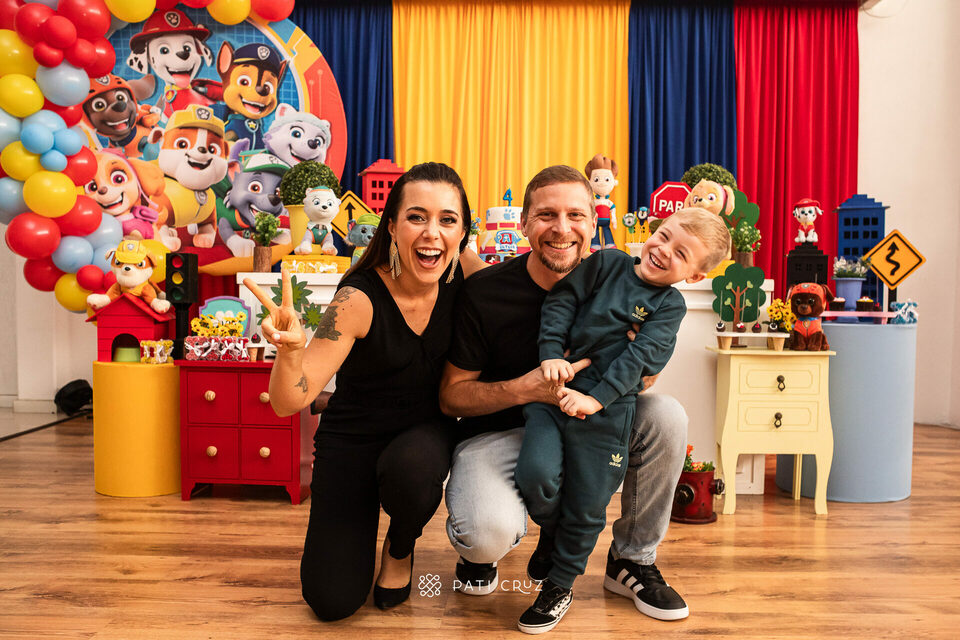 Ao som de acústicos e valvulados o pequeno roqueiro dançou, pulou deu cambalhotas e curtiu muito a sua música preferida, com direito a plateia dos familiares, que se divertiram assistindo a empolgação do pequeno. A hora da tatuagem foi compartilhada com amigos e com a mãe, que acompanhou o Leo, adicionando um patrulheiro às suas tatuagens. Na sequência, chegou o momento do parabéns, e então encerrei a minha participação na festa do Leo com a certeza dever cumprido