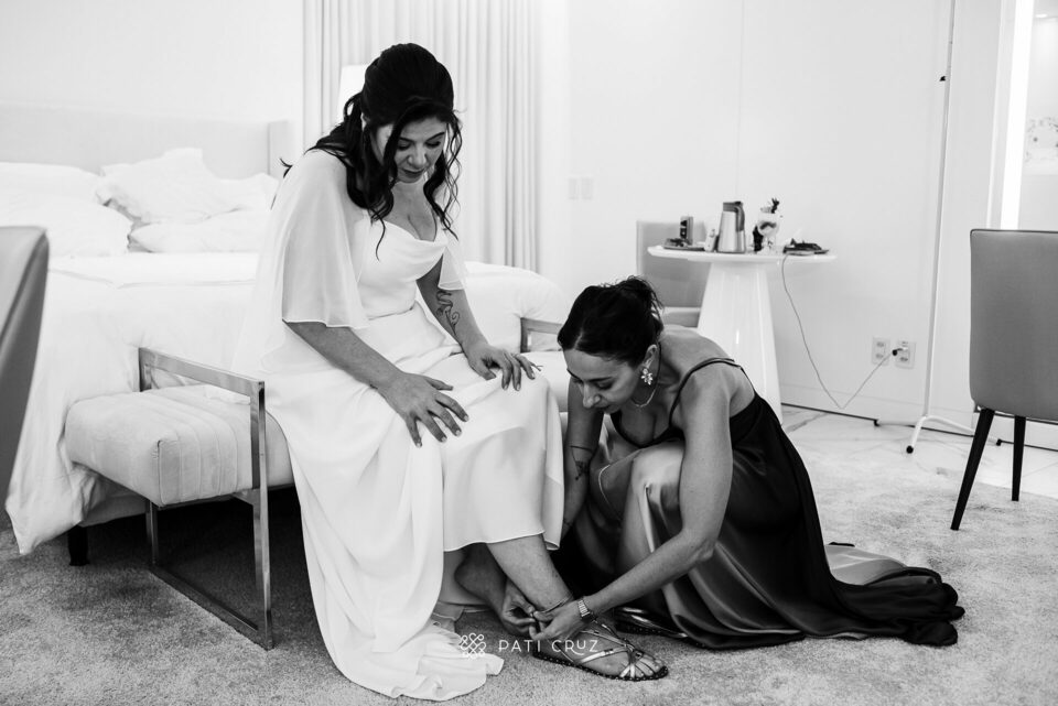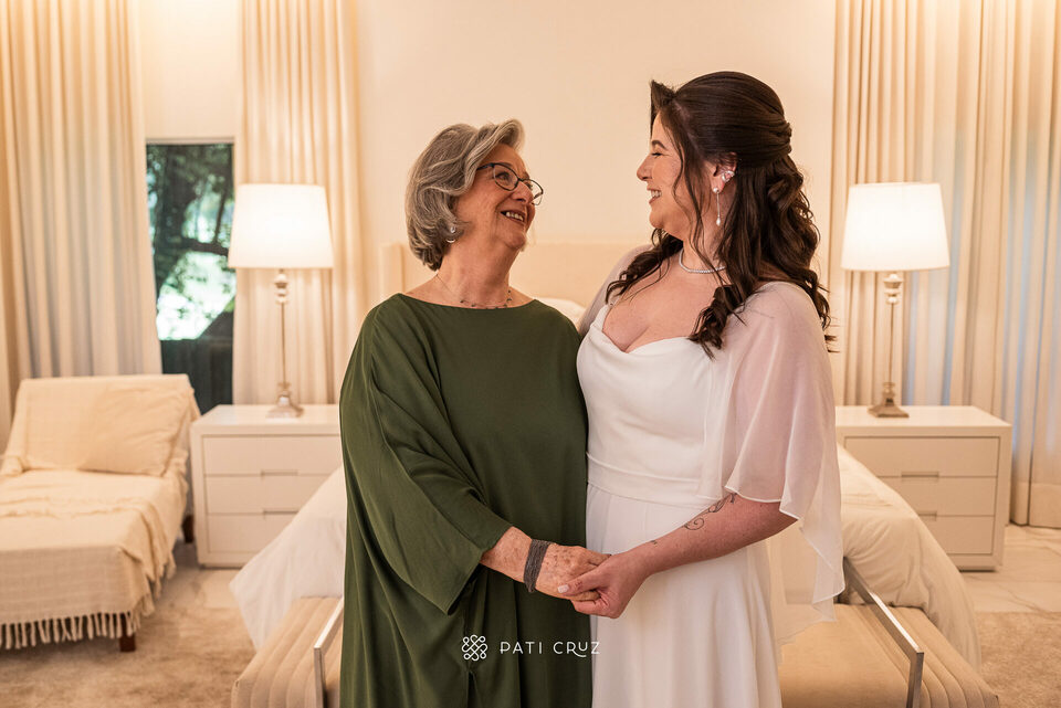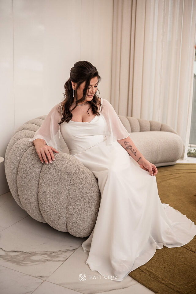 A estilista escolhida para confeccionar o vestido foi a Helen, que veio de São Paulo para vestir a Miche. Elas se aproximaram tanto que a Helen acabou também sendo convidada para o casamento.