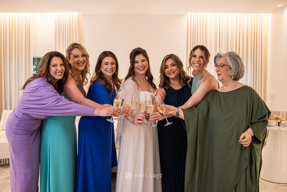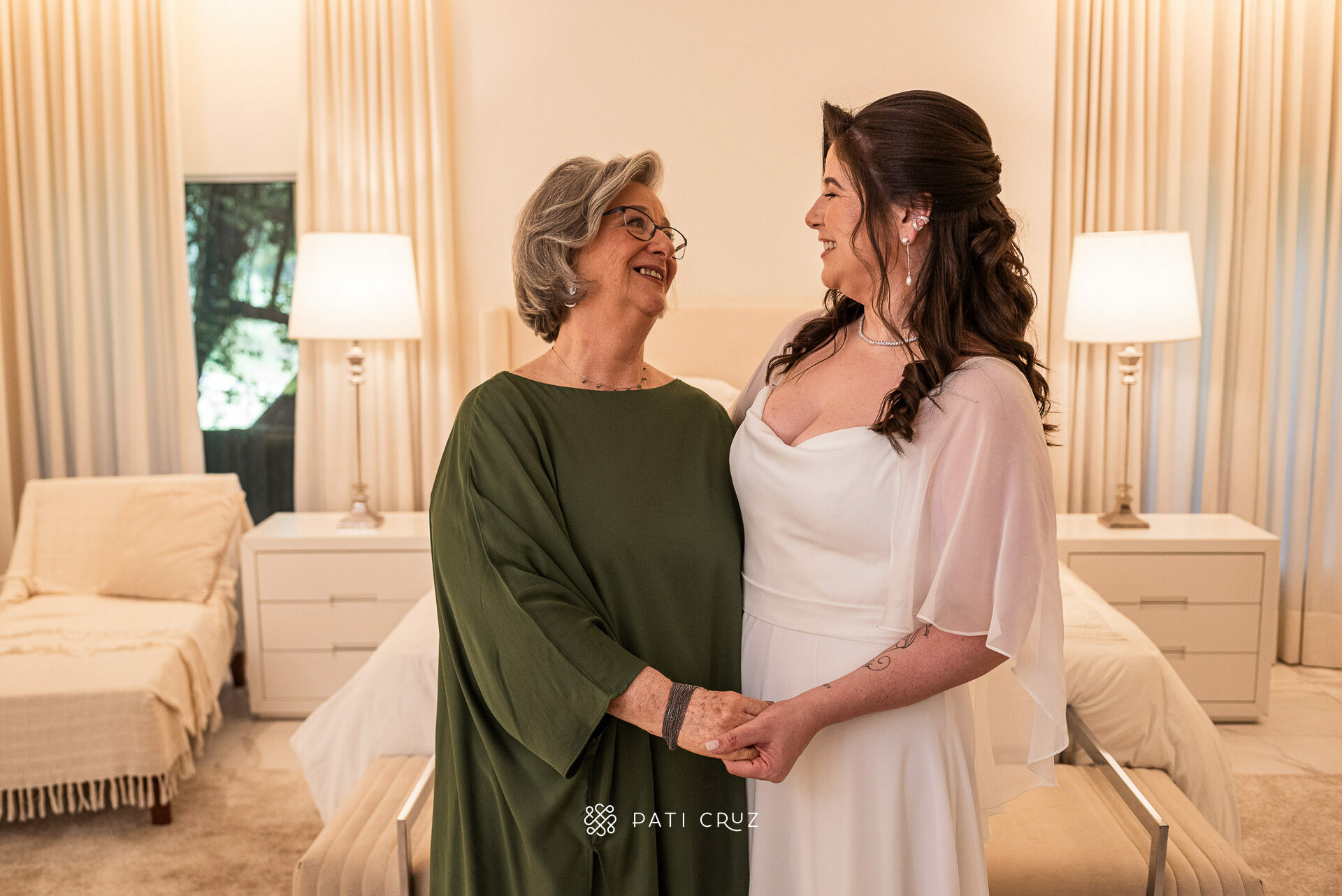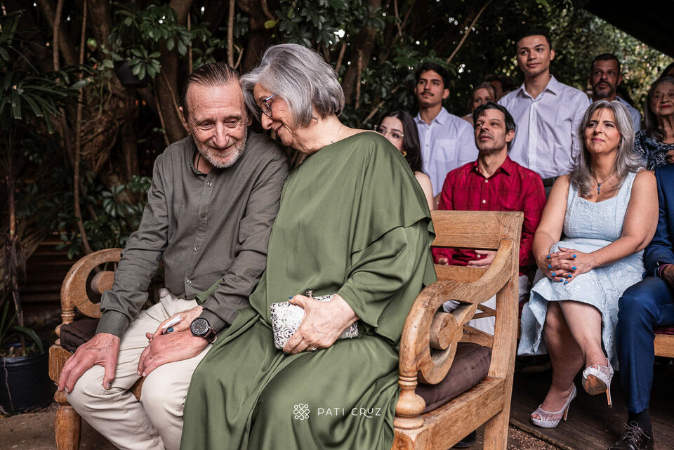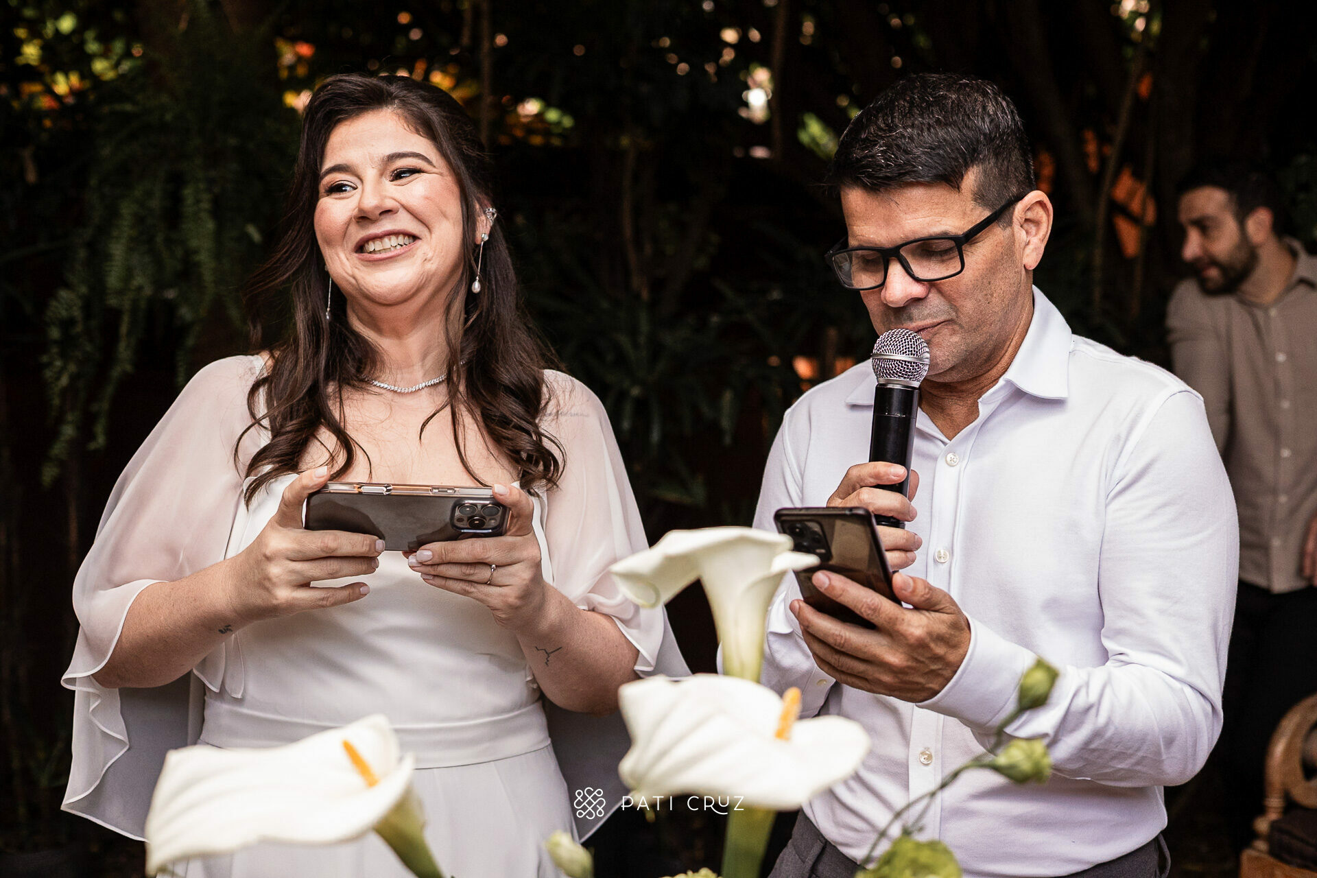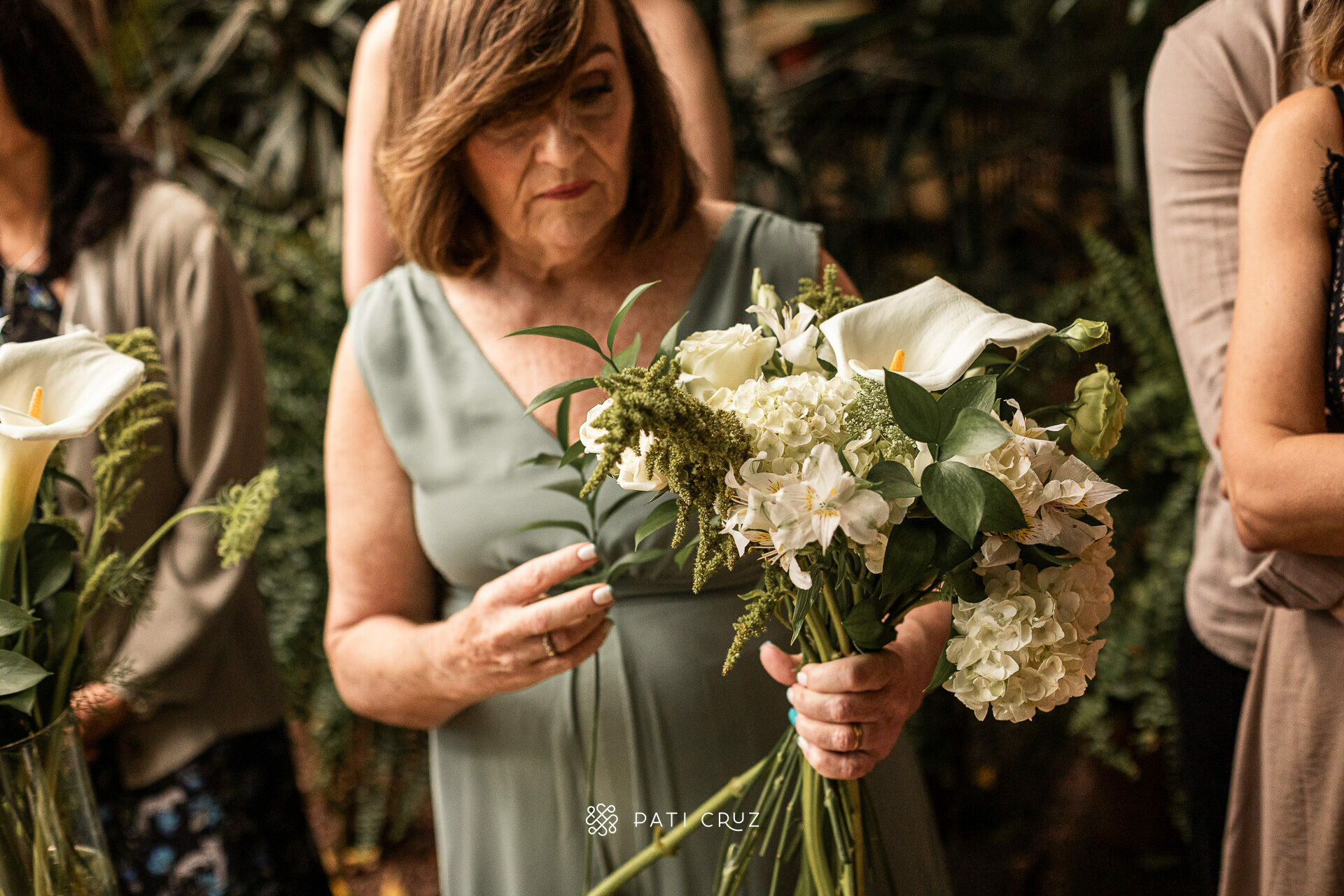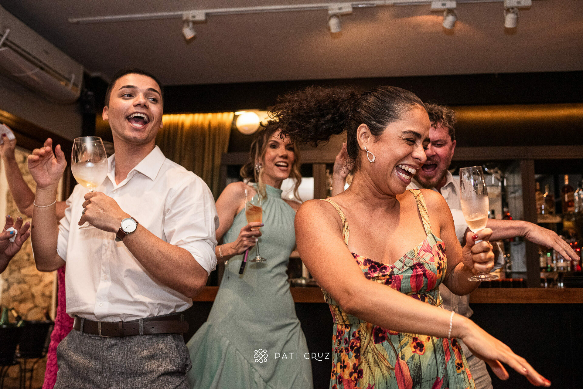 Ela optou por não entrar com buquê. Tanto ela quanto os padrinhos entraram segurando uma única flor, e todas essas flores foram transformadas no buquê pela madrinha de batismo da Michelle. Música é algo muito importante para ela, e uma de suas amigas e madrinhas, a Anaadi, cantora e compositora, mesmo morando atualmente na França, veio para o casamento. Junto com sua banda, garantiu a animação da festa. O pai da Miche também se aventurou no pandeiro e arrasou.