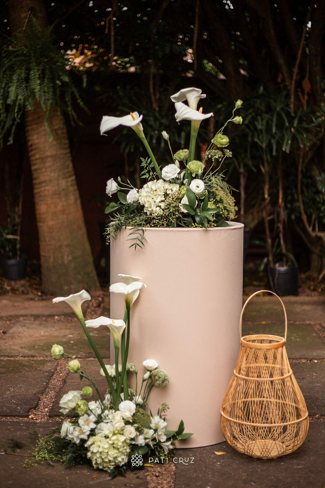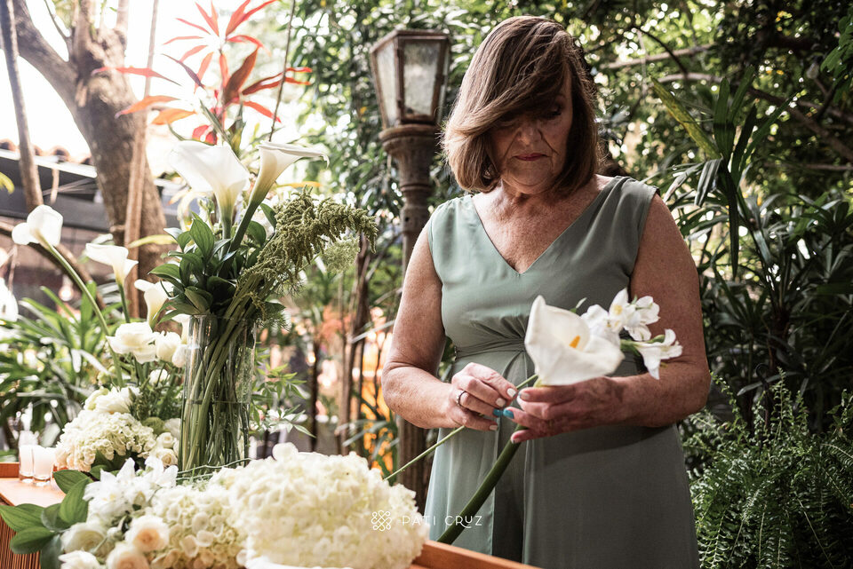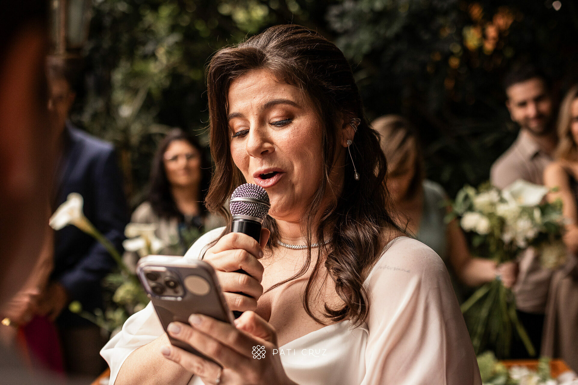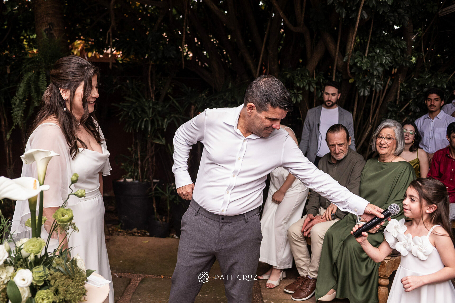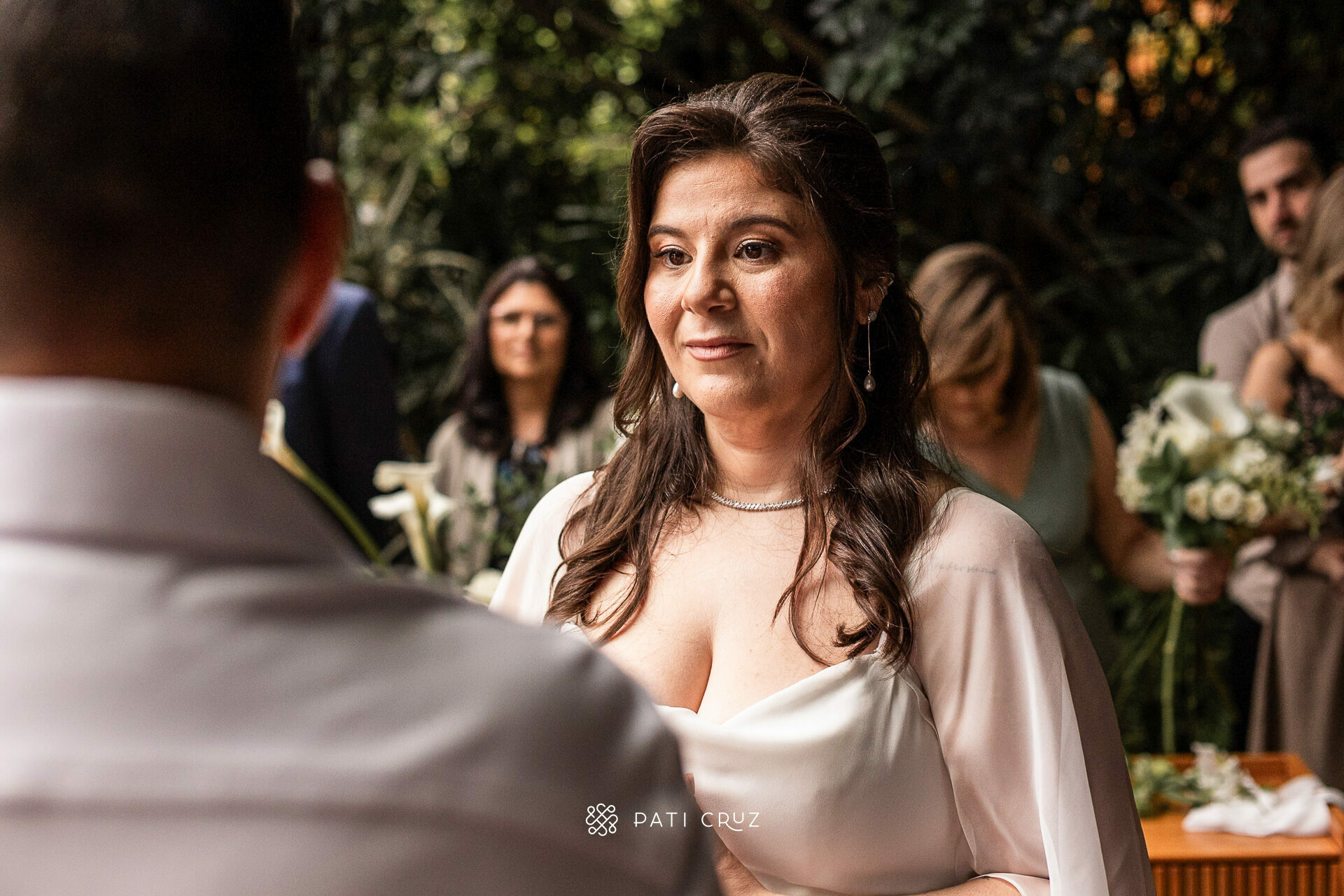 Ela optou por não entrar com buquê. Tanto ela quanto os padrinhos entraram segurando uma única flor, e todas essas flores foram transformadas no buquê pela madrinha de batismo da Michelle. Música é algo muito importante para ela, e uma de suas amigas e madrinhas, a Anaadi, cantora e compositora, mesmo morando atualmente na França, veio para o casamento. Junto com sua banda, garantiu a animação da festa. O pai da Miche também se aventurou no pandeiro e arrasou.