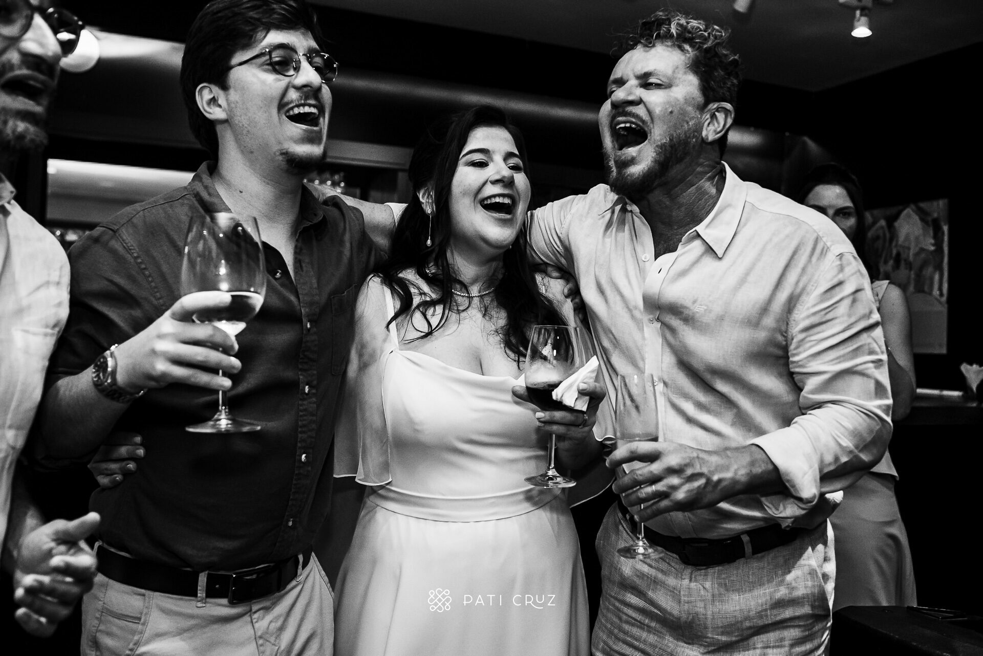 A Miche é minha prima e, além de fotógrafa contratada, eu e o Fábio também éramos convidados; por isso contamos com o Dener para nos auxiliar na cobertura fotográfica. O casamento teve tudo a ver com a cara da Miche e do Boli: aconteceu em um domingo, no horário do almoço, e a própria casal realizou a celebração da cerimônia.