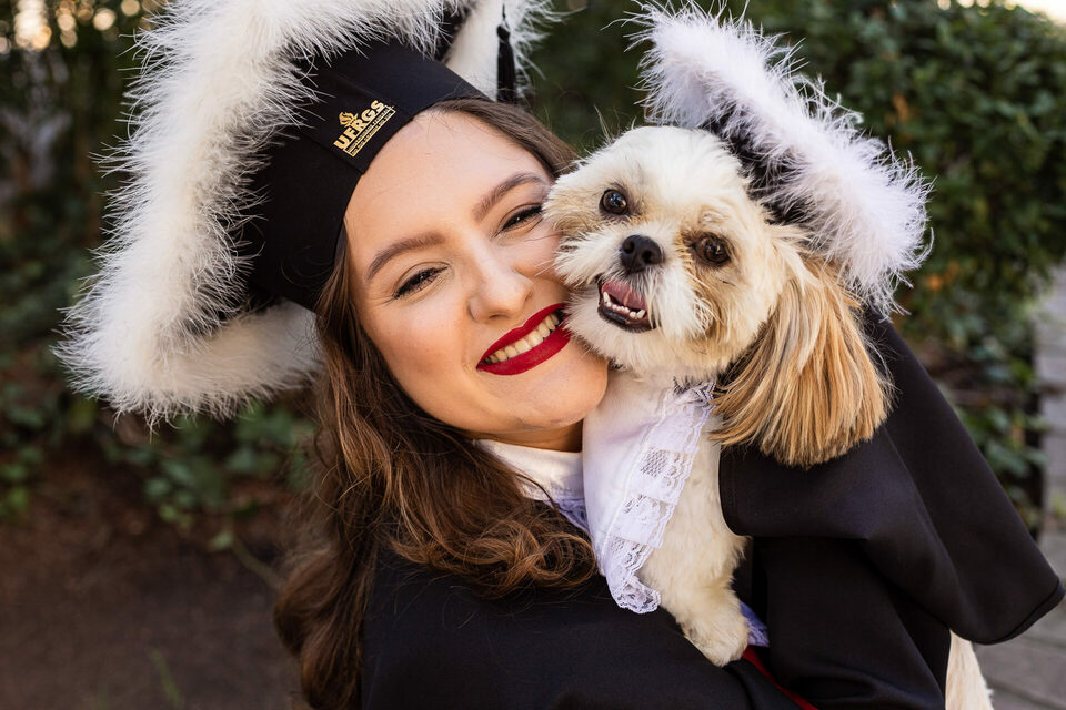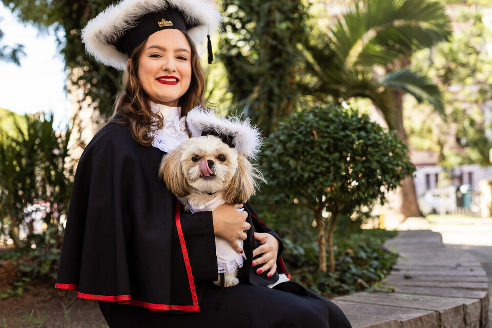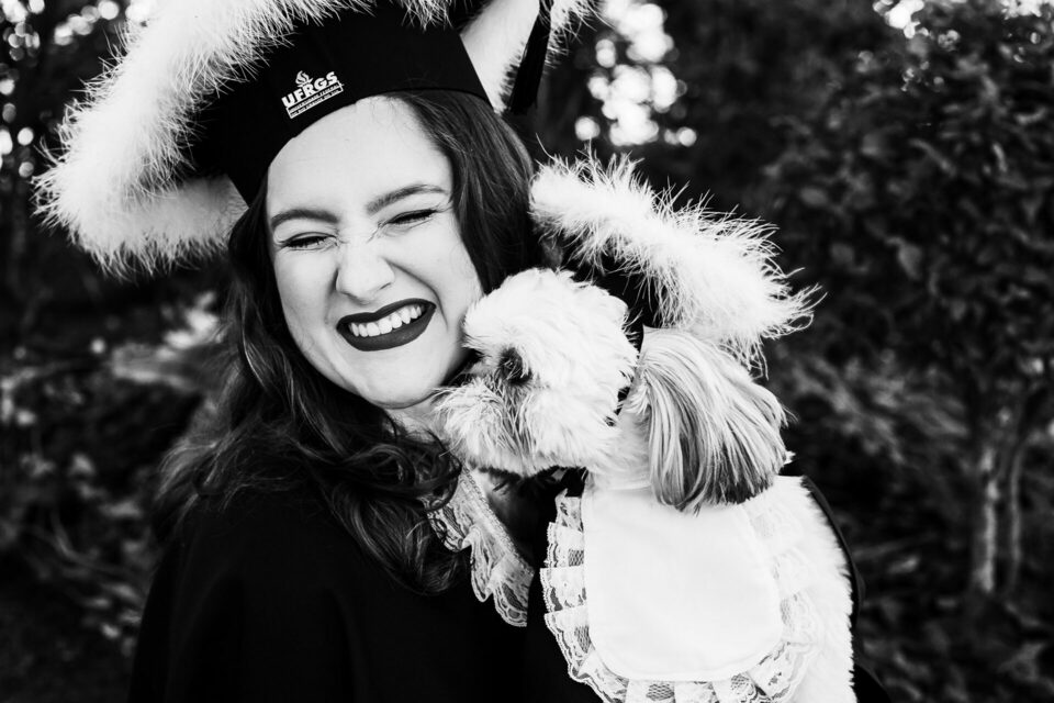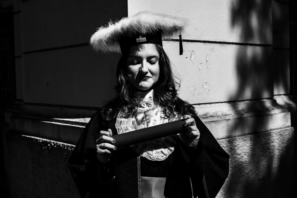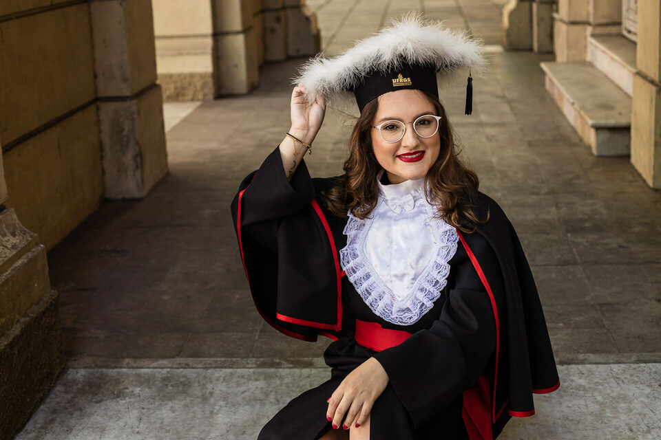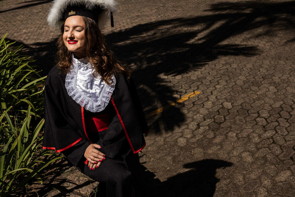 A Laura se formou em direito na UFRGS e escolheu como local para o ensaio de togas o próprio prédio do curso, que é incrivelmente lindo! Fizemos fotos lá dentro, explorando os vitrais dos corredores pelos quais ela passou inúmeras vezes durante o curso, e também algumas fotos do lado de fora, incluindo o Reginaldo, "filho" canino dela. As fotos do ensaio dela ficaram tão lindas, que duas delas acabaram sendo premiadas no concurso de fotografia de formatura da FineArt Association. Rola para baixo para ver o resultado do ensaio de toga da Laura. E se quiser conferir como foi o dia da formatura dela, que eu também acompanhei, clica aqui.