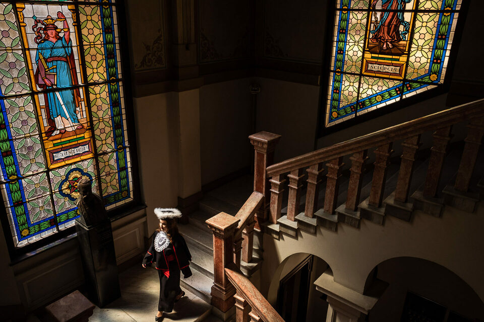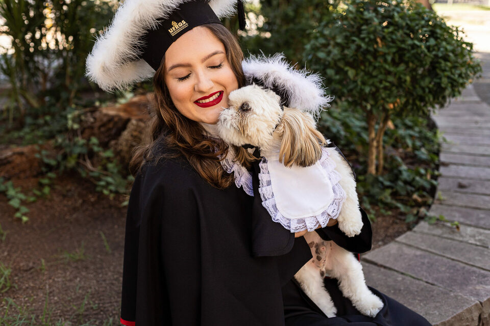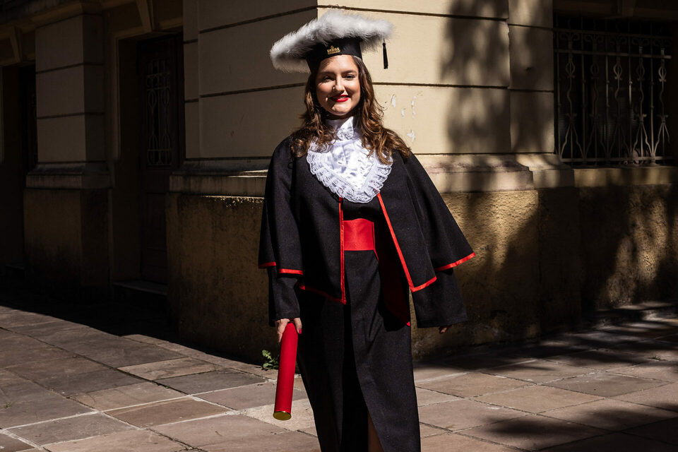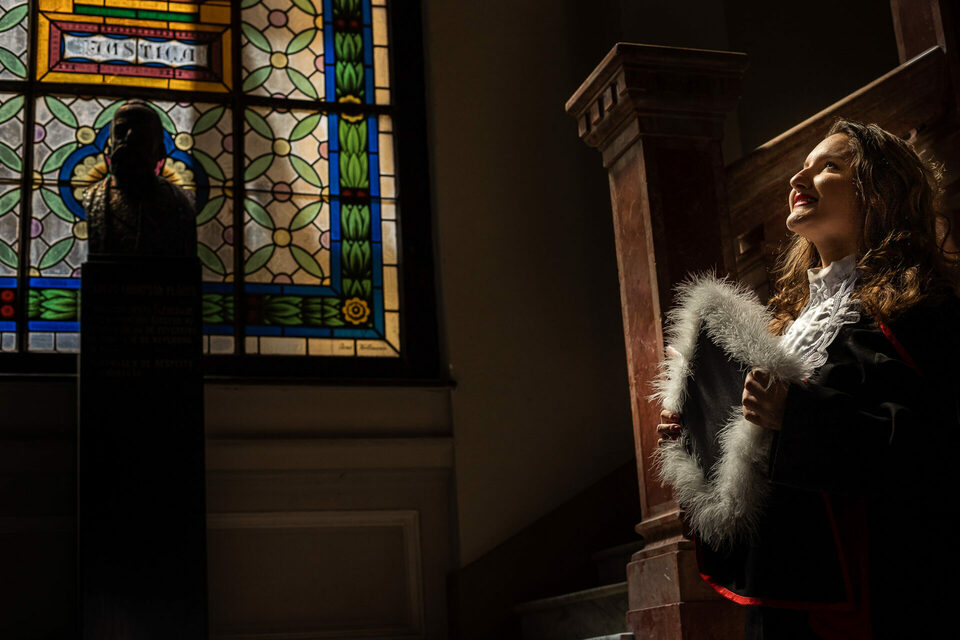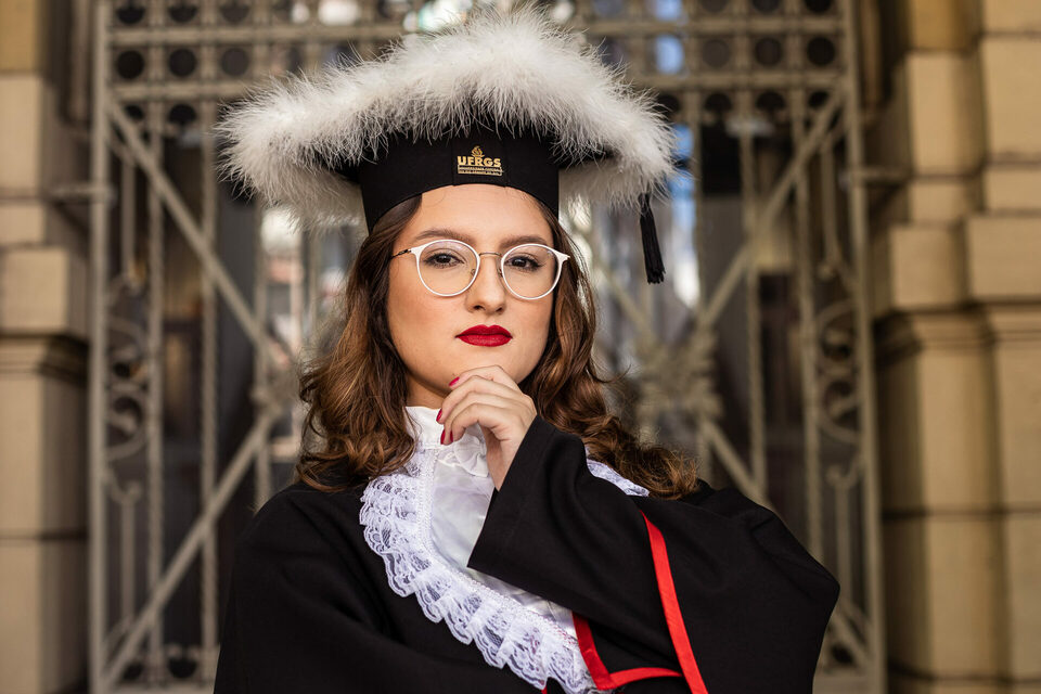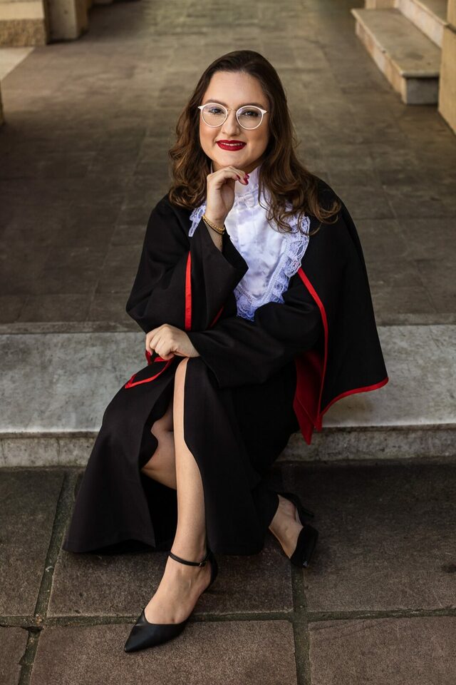 A Laura se formou em direito na UFRGS e escolheu como local para o ensaio de togas o próprio prédio do curso, que é incrivelmente lindo! Fizemos fotos lá dentro, explorando os vitrais dos corredores pelos quais ela passou inúmeras vezes durante o curso, e também algumas fotos do lado de fora, incluindo o Reginaldo, "filho" canino dela. As fotos do ensaio dela ficaram tão lindas, que duas delas acabaram sendo premiadas no concurso de fotografia de formatura da FineArt Association. Rola para baixo para ver o resultado do ensaio de toga da Laura. E se quiser conferir como foi o dia da formatura dela, que eu também acompanhei, clica aqui.