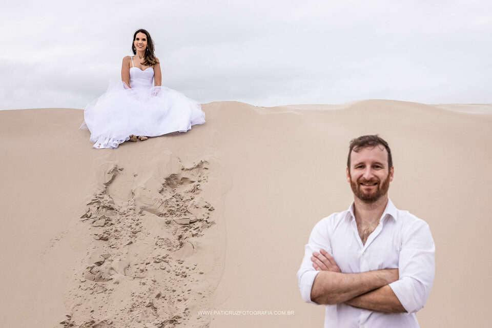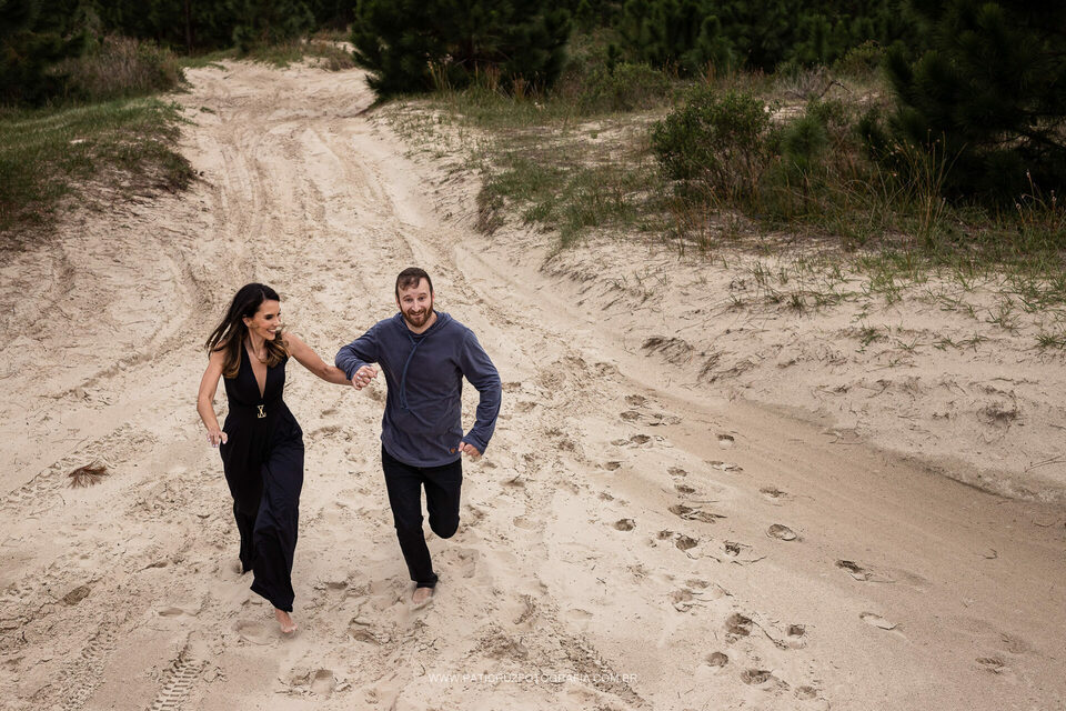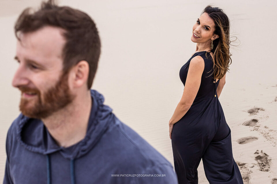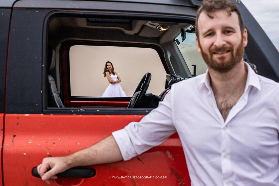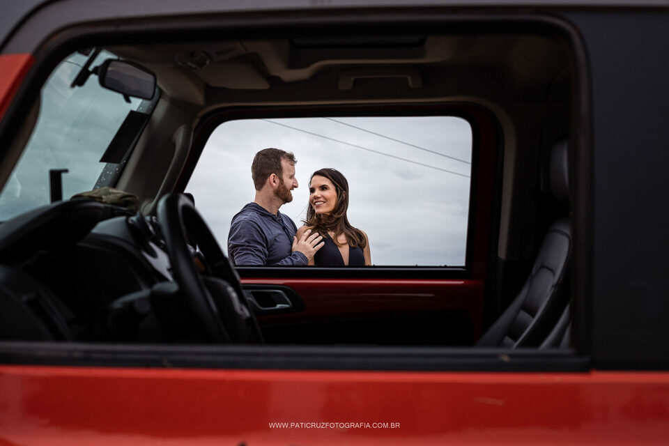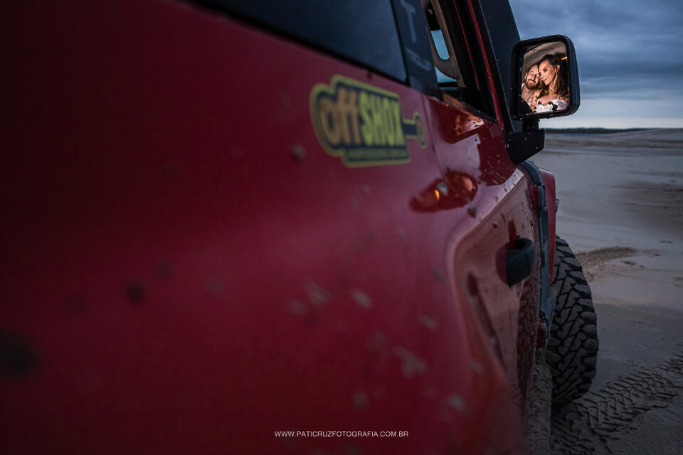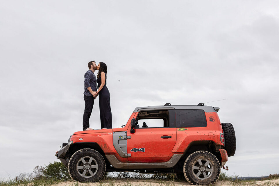 Para mim, registrar o ensaio deles foi uma experiência super legal, porque também sou uma pessoa aventureira, que adora uma trilha, um mato e uma barraca, e nunca tinha andado de troller em cima das dunas. Eles toparam todas as minhas ideias, e até em cima da troller eu e a Gabi andamos para conseguir fotos diferentes. E o Fabian, que não é muito chegado em posar para fotos, adorou realizar o ensaio fazendo o que ele ama: trilha com troller.