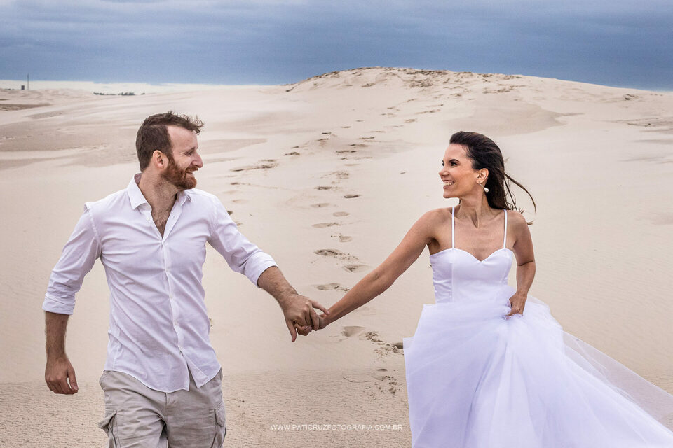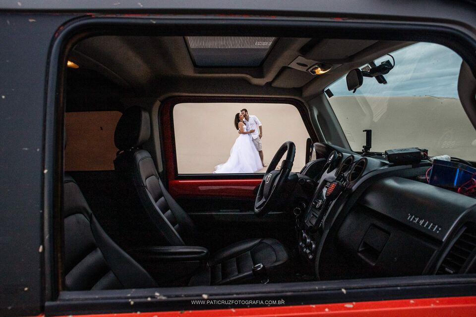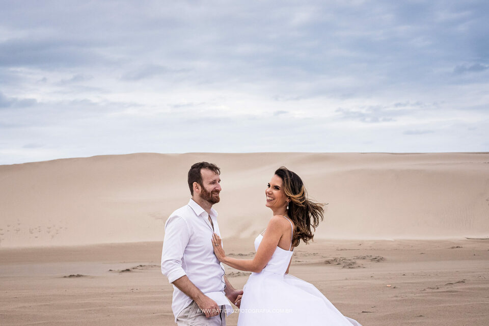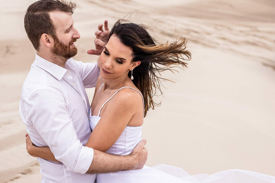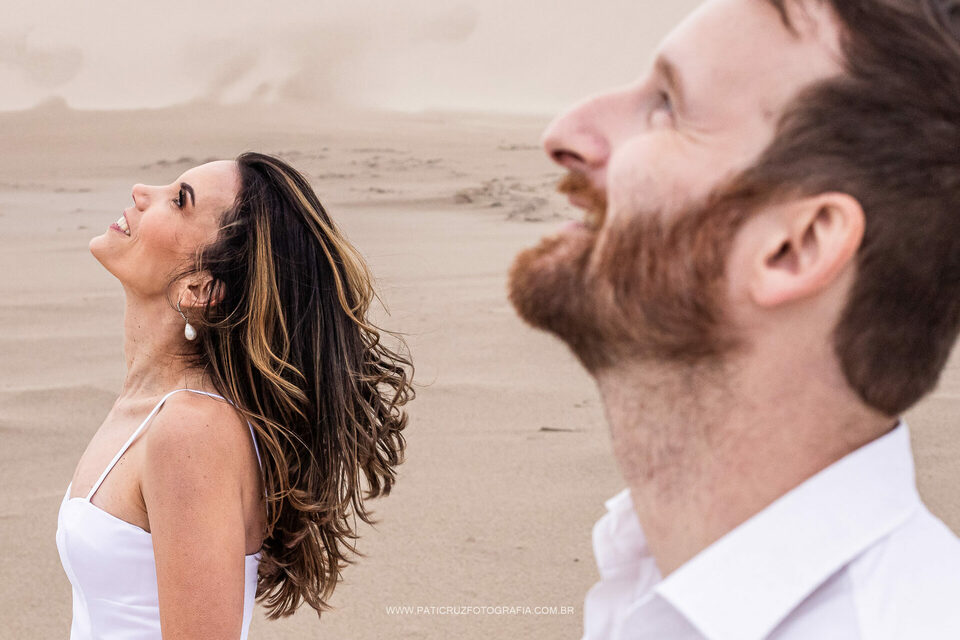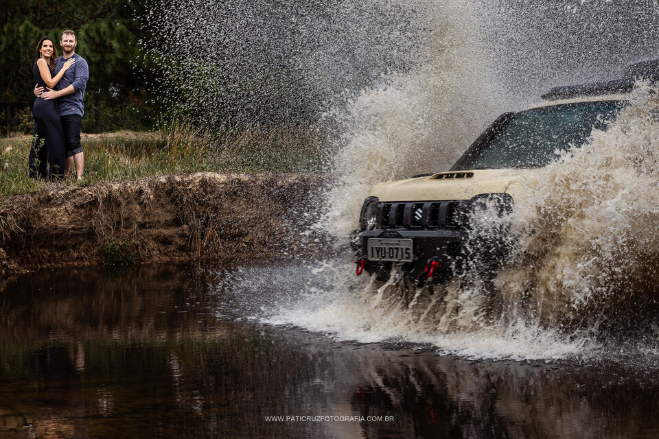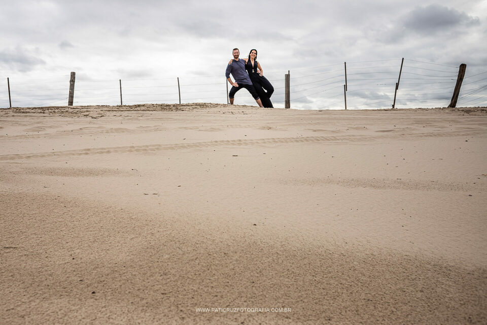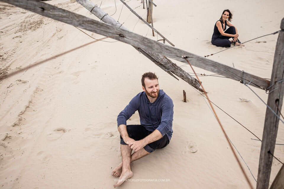 Para mim, registrar o ensaio deles foi uma experiência super legal, porque também sou uma pessoa aventureira, que adora uma trilha, um mato e uma barraca, e nunca tinha andado de troller em cima das dunas. Eles toparam todas as minhas ideias, e até em cima da troller eu e a Gabi andamos para conseguir fotos diferentes. E o Fabian, que não é muito chegado em posar para fotos, adorou realizar o ensaio fazendo o que ele ama: trilha com troller.