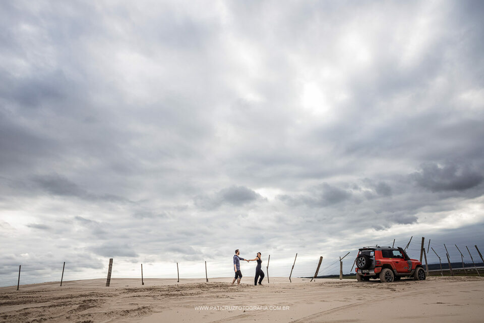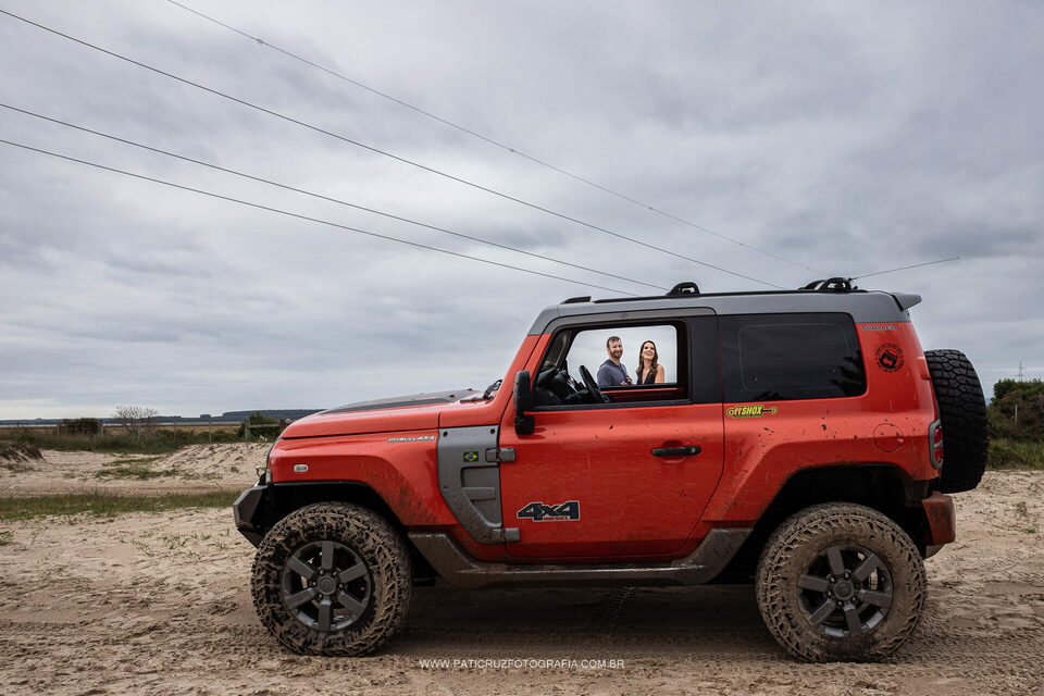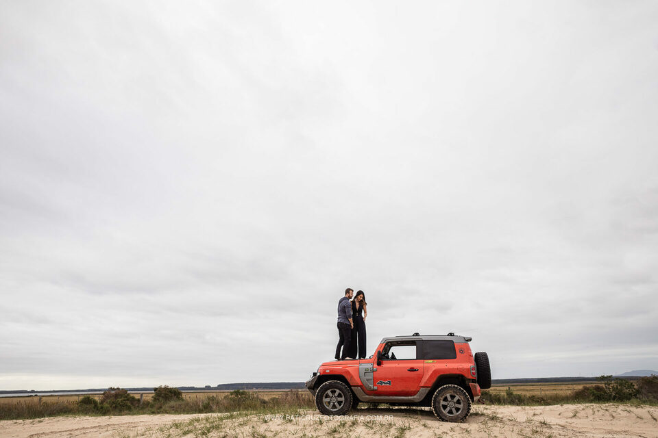 E Gabi e o Fabian são um casal super aventureiro, e um dos principais hobbies deles é desbravar novos lugares fazendo trilhas com a troller. Assim que fechamos o pacote de casamento com ensaio pré-wedding, já ficou combinado que o ensaio deles seria feito com a troller. Como eu não conheço os caminhos possíveis para trilhas de com 4x4, eles mesmos já sugeriram alguns lugares legais pelos quais já haviam passado, e acabamos optando por fazer o ensaio nos lençois cidreirenses, que fica no RS, há pouco mais de 1h de Porto Alegre.