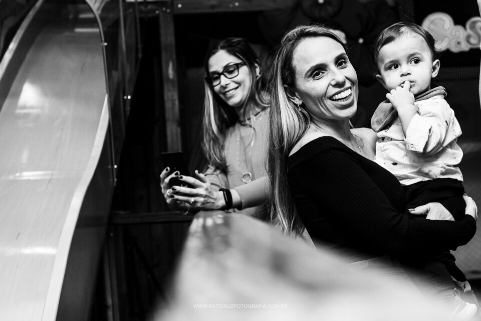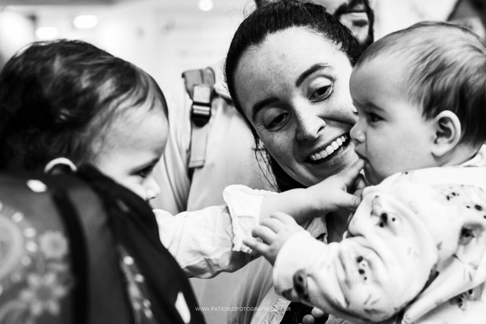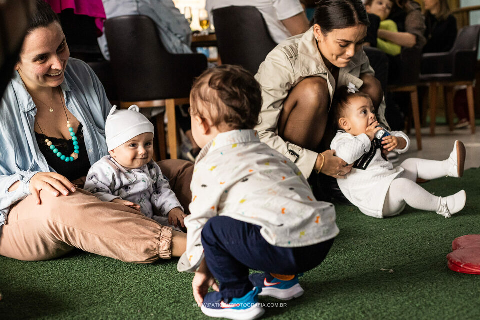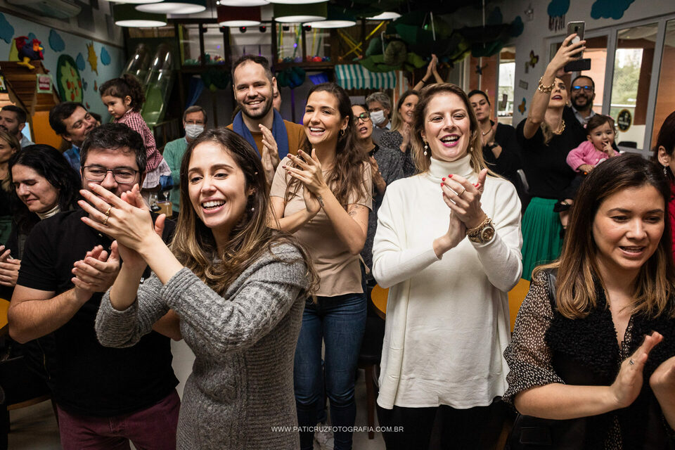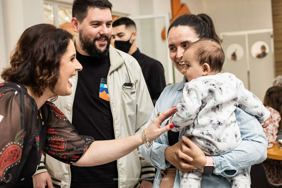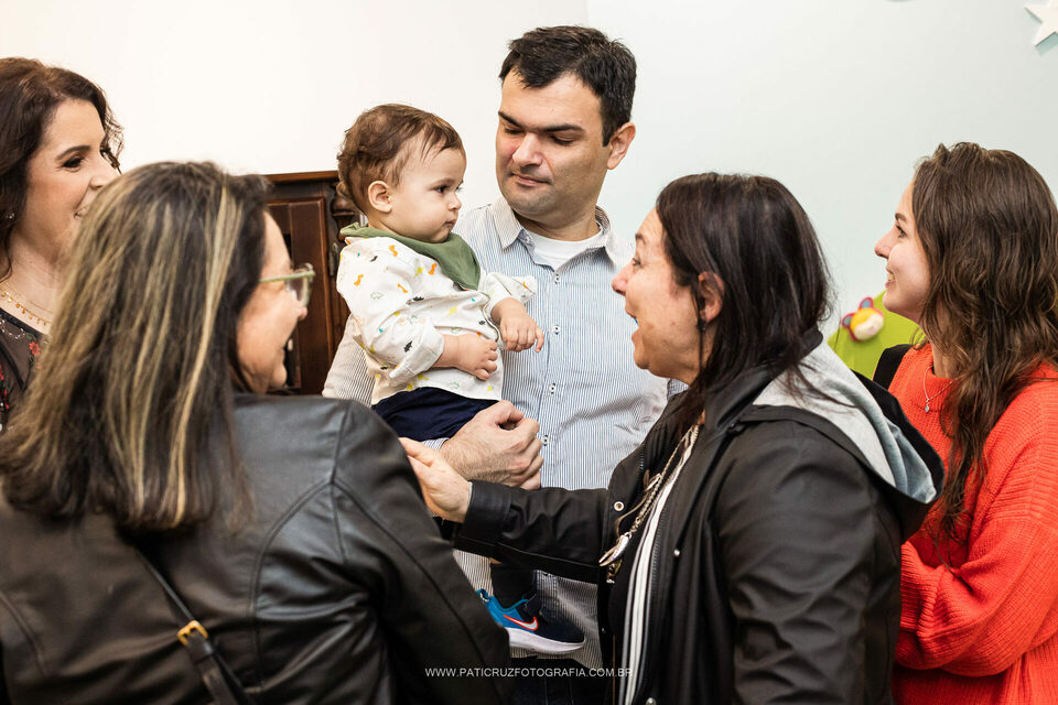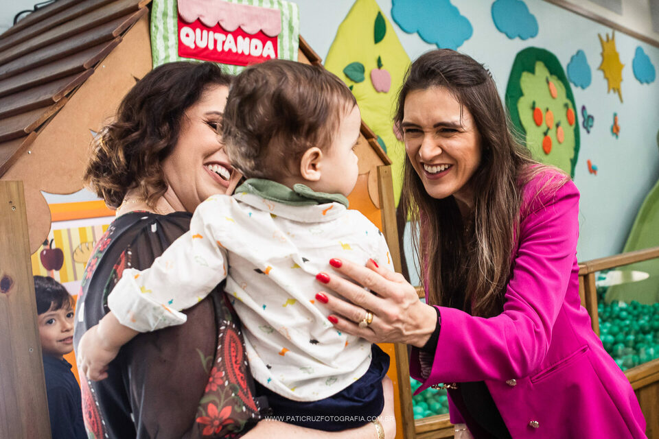 Os três foram recepcionados com cantoria bem animada, e logo de cara o Teteu já se agarrou no violão da decoração. Registrei a festa do início ao fim, captando muitas brincadeiras, abraços e afofadas no Teteu, que é um gurizinho super tranquilo.
