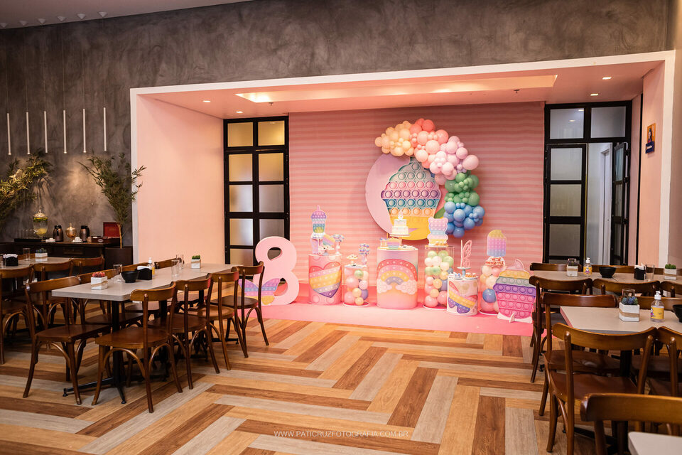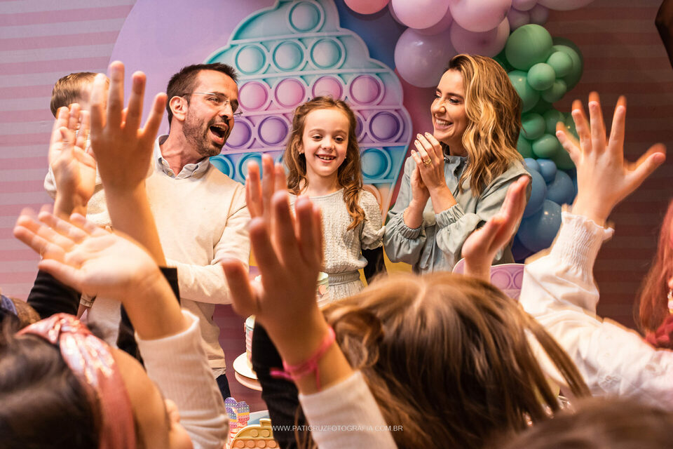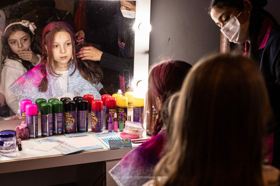 Conheci a Alice nesse mesmo salão, há 3 anos, quando registrei a festa de 5 anos dela, em agosto de 2019. Nesses 3 anos muita coisa aconteceu: a família cresceu com a chegada do Miguel, a Alice aprendeu a ler, concluiu a fase pré-escolar e foi para a "escola grande". Vivemos uma pandemia com direito a festa de 6 anos virtual, isolados em casa, e festa de 7 anos só com as amigas mais próximas no salão do prédio, e eu estava lá, acompanhando e registrando cada um desses momentos.