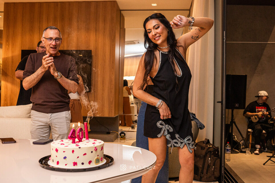 Nada melhor do que comemorar a chegada de um novo ciclo rodeado de pessoas queridas. Assim foi a festa de quarentou da Paty. Para celebrar esse marco tão especial, ela escolheu festejar na casa da tia, e planejou tudo nos mínimos detalhes: copo personalizado, welcome shots, gelos com flores e um lindo bar de caipirinhas. Risos ecoavam pela sala enquanto a Paty recepcionava os convidados, recebendo abraços apertados daqueles que só os amigos de verdade sabem dar. Teve muita conversa boa, drinks, espetinhos, e para fechar a comemoração, uma banda de pagode ao vivo trazendo aquela vibe leve, divertida e contagiante que fez todo mundo cantar junto. A Paty dançou, riu, se emocionou e viveu intensamente cada minuto.