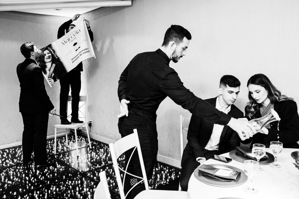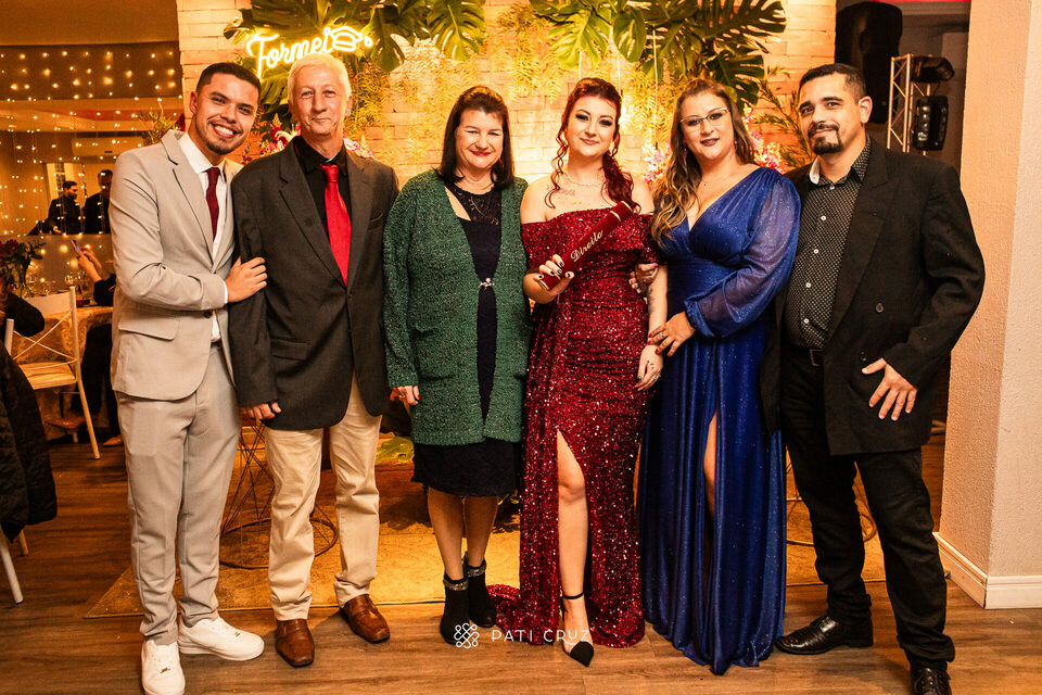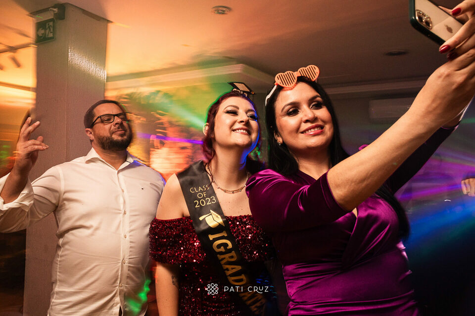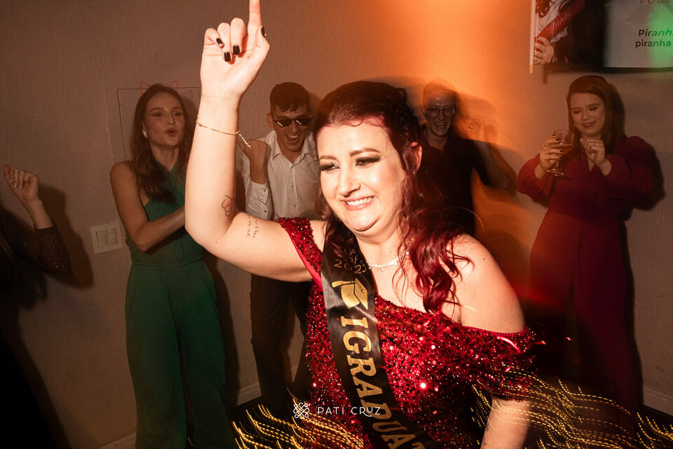 A festa de formatura da Marcela aconteceu no primeiro sábado de agosto de 2023 em Porto Alegre. Nós já nos conhecíamos; fiz o ensaio de formatura da Marcela há quase 1 ano, e agora estávamos juntas outra vez, para eu registrar o grande dia dela. A festa foi planejada nos mínimos detalhes, desejada e muito esperada. E depois de tanto tempo, finalmente o dia chegou!