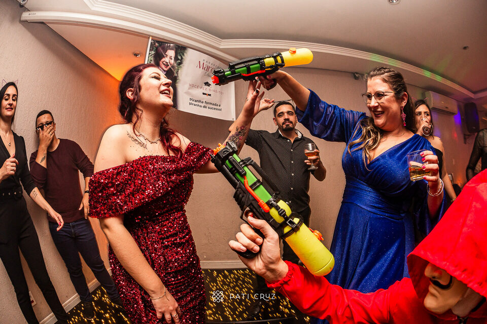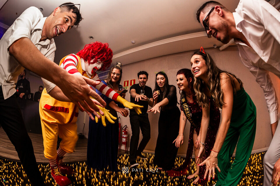 Os convidados foram recepcionados pelos pais da formanda, que fez uma linda entrada assim que todos já haviam chegado, sendo surpreendida pelo namorado com um banho de chuva de prata dourada. Após o jantar, palavras queridas dos pais, um lindo anel de formatura e agradecimentos, seguidos de um brinde. O ponto alto da festa foi a pista de danças, quando todos dançaram e se divertiram muito. A animação ficou ainda maior com a chegada do personagem Ronald McDonald para entregar os lanchinhos da madrugada, seguido do La Casa de Papel, com arminha de bebida para a galera. A Marcela desceu do salto e, de pés descalços, se entregou e aproveitou a festa até o final. Aos que iam embora, levavam como lembrança um "obrigada" manuscrito pela própria formanda.