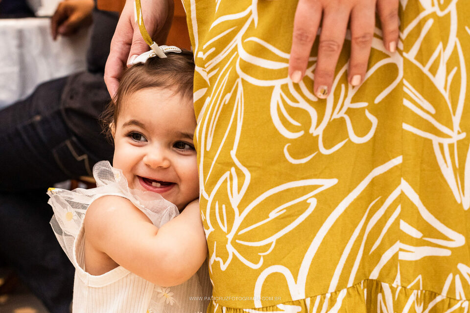 A Anita chegou na festa caminhando e sorrindo, e assim foi durante toda a festa. Sabe aquelas crianças simpáticas, que não entranham ninguém? Assim é ela.
