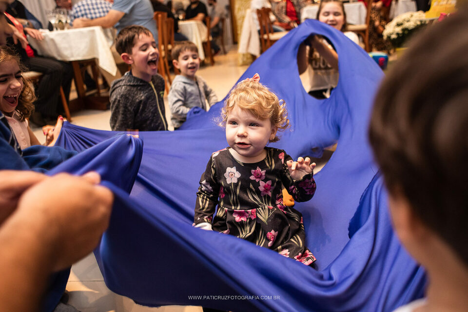 A animação das crianças mais velhas ficou por conta da equipe da Cia Lúdica, que também conduziu o parabéns super animado.