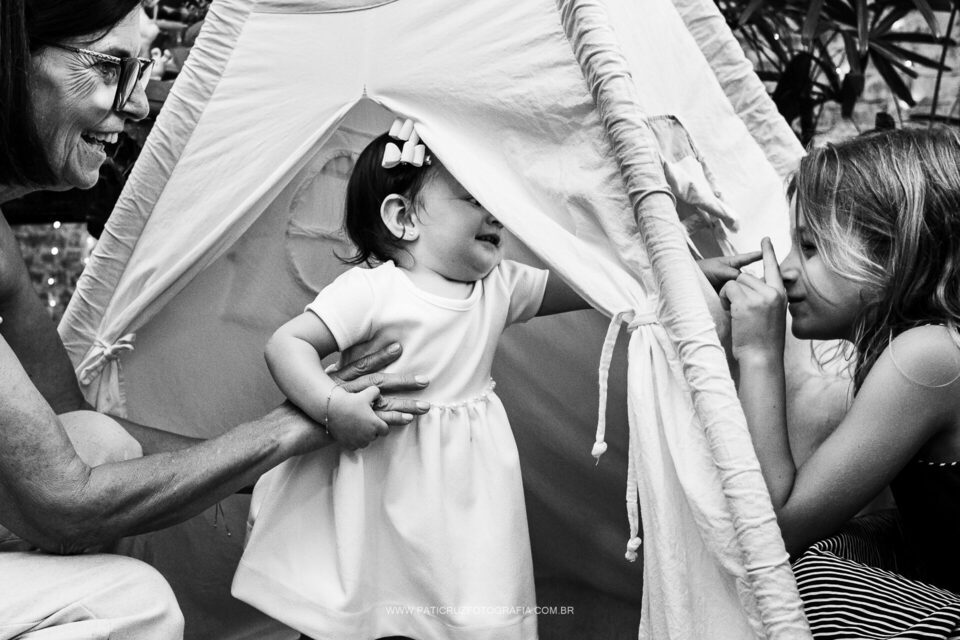 Pensa em uma criança simpática, sorridente e linda. Pensou?! Assim é a Ana. O aniversário de 1 ano dela foi comemorado no La Morada, na zona sul de Porto Alegre, e contou com a presença dos avós, tios, primos, demais parentes e amigos próximos. Como choveu no dia, a comemoração teve que ser toda do lado de dentro, mas isso não atrapalhou em nada a diversão.