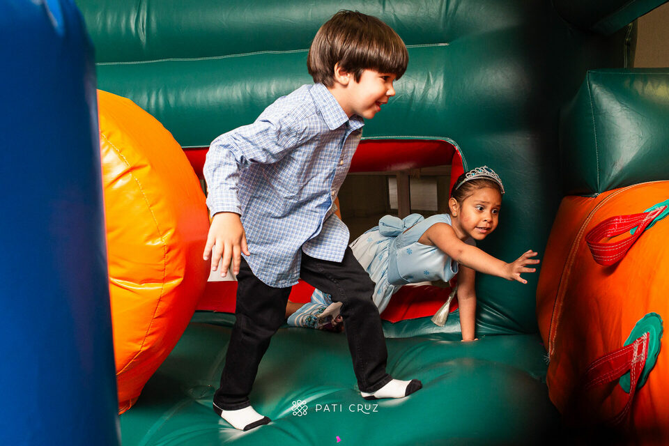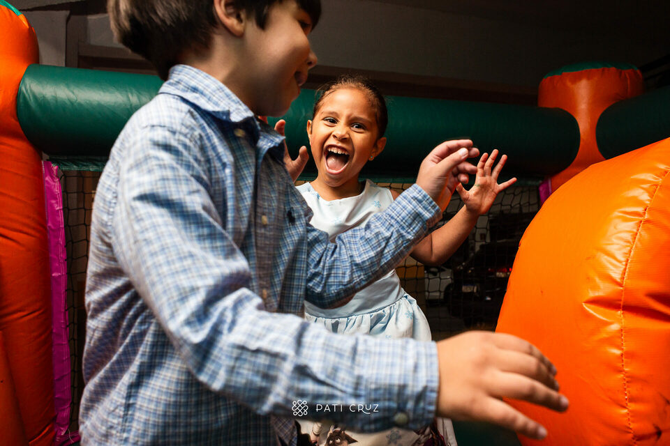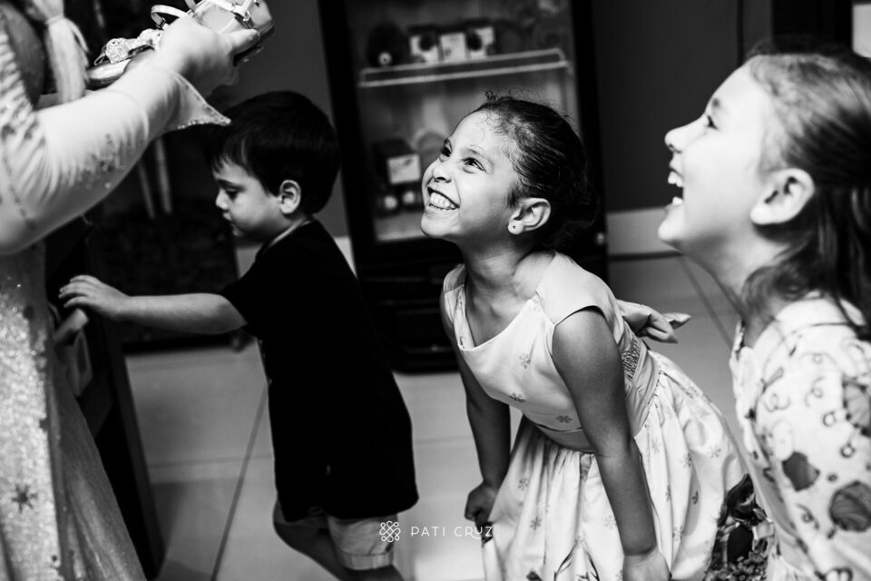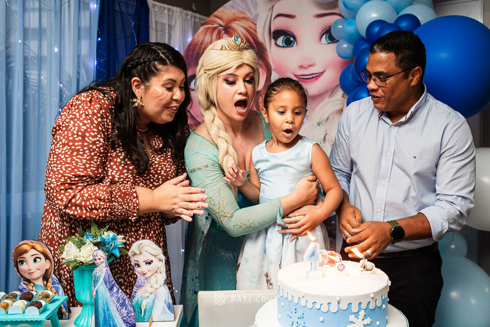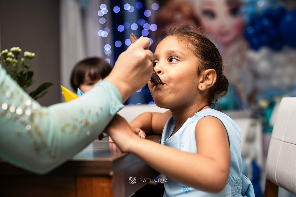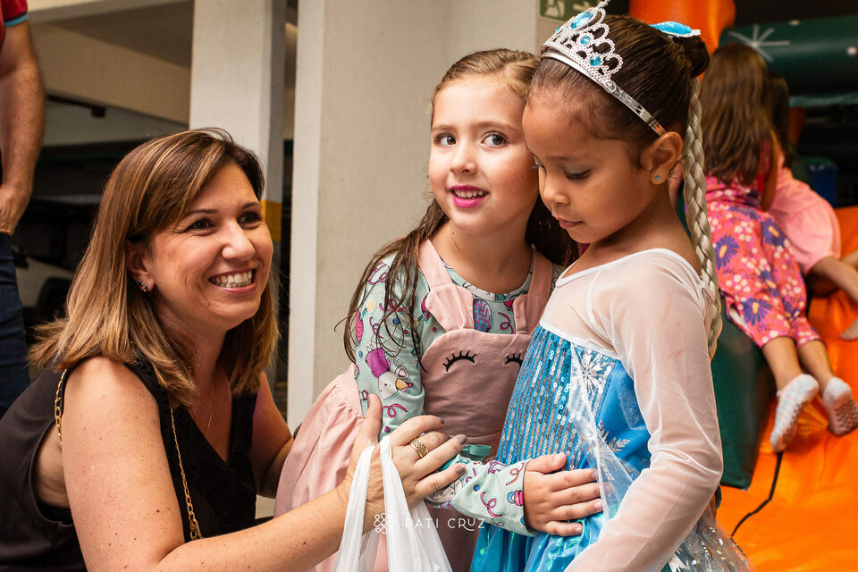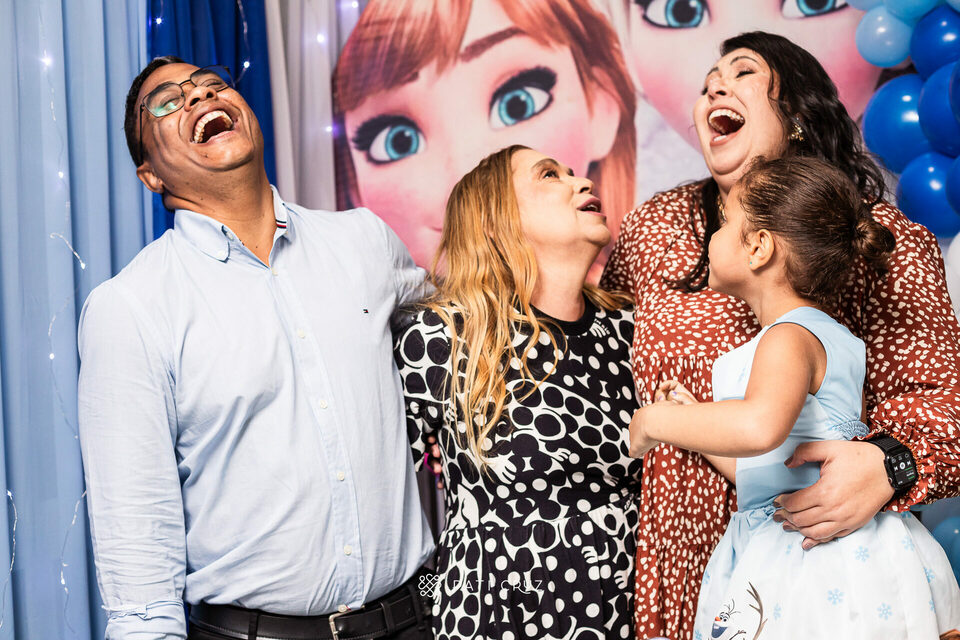 Os 4 anos da Ana Julia foram comemorados no salão do condomínio, com a temática clássica: Frozen. Já conheço a Ana Júlia há um tempo (inclusive aqui estão os registros da festa de 2 anos dela) e sei que ela é o tipo de menina mais tímida e centrada, mas que em pequenas coisas demonstra o que está sentindo e às vezes abre um sorrisão inesperado. No começo da festa ela estava bastante quietinha, mas aos poucos, conforme os amigos foram chegando, ela foi se soltando e aproveitou muito a cama elástica e o brinquedo inflável. Após algumas pipocas e uns goles de suco, chegou o momento da grande surpresa! A inesperada chegada da rainha Elsa deixou a pequena Ana Júlia anestesiada, não acreditando que estar vendo-a ao vivo em sua frente. A presença da personagem foi o ápice da festa e a Ana Julia não desgrudou dela por nem um segundo, aproveitando cada instante com a presença da princesa.