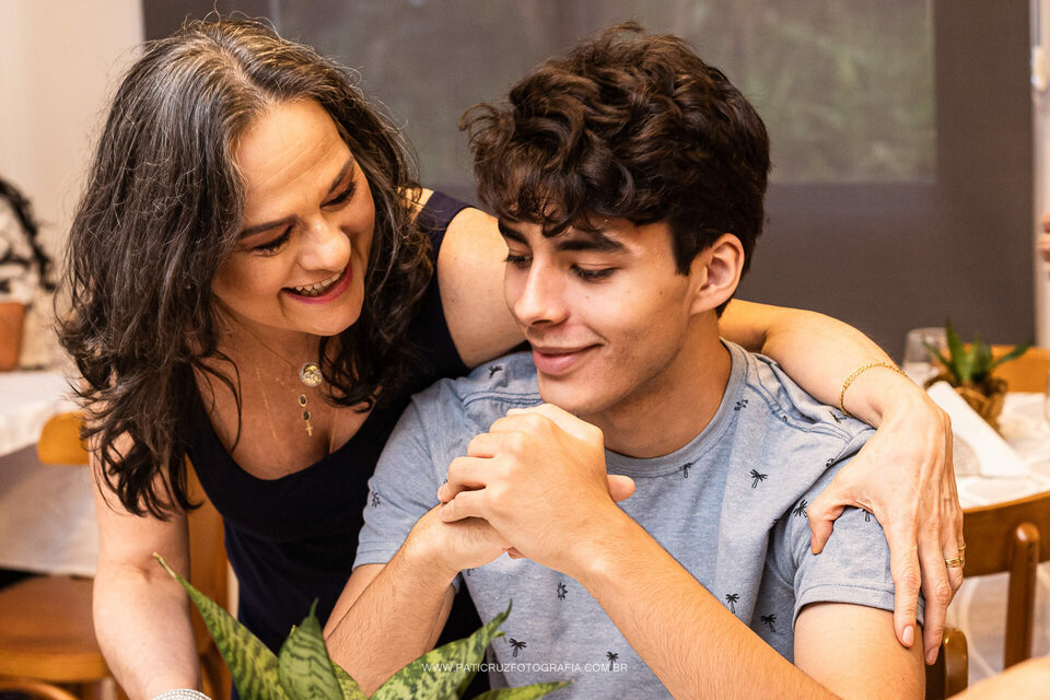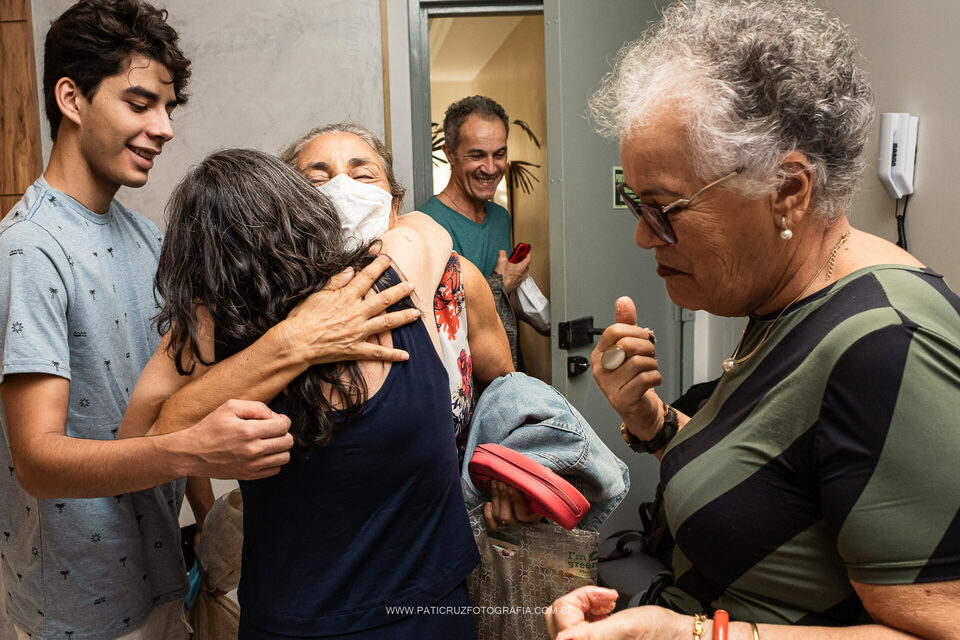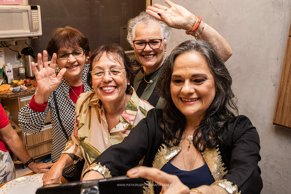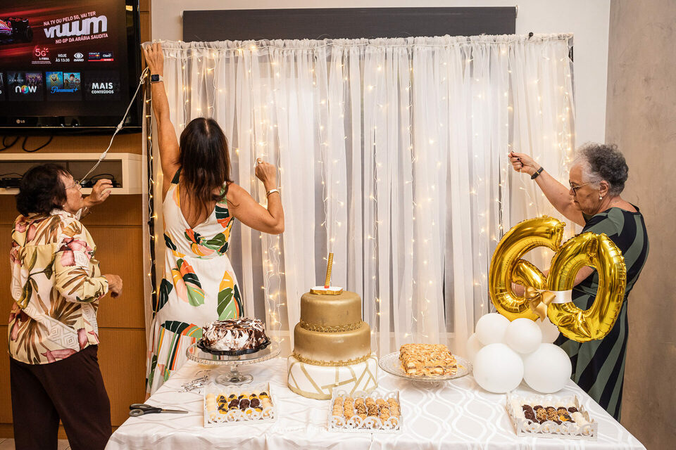 A Helô resolveu comemorar seu aniversário de 60 anos no salão do condomínio, junto com parentes e amigos próximos. A festinha foi organizada em uma tarde de domingo com ajuda das irmãs e sobrinhas, e registrei muitos momentos descontraídos, boa risadas, e também a participação do filho único na festa, através de um videochamada diretamente da Itália, país onde o Raul mora já há alguns anos.
