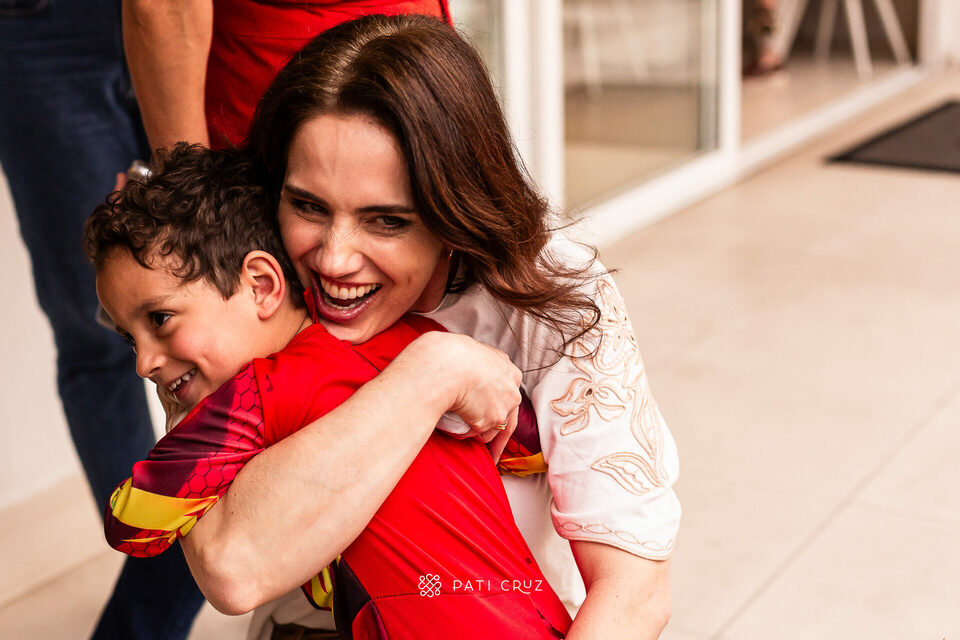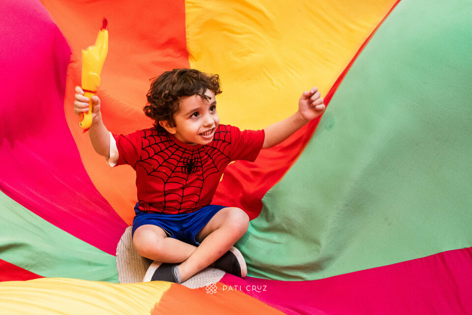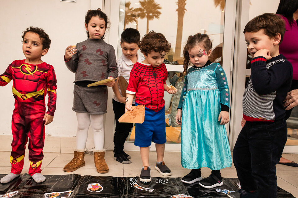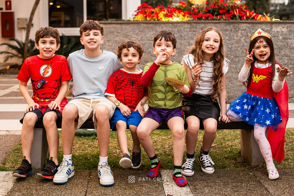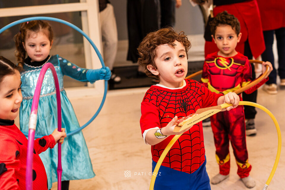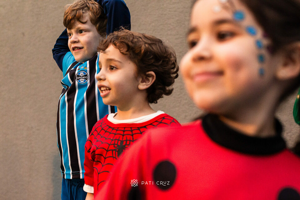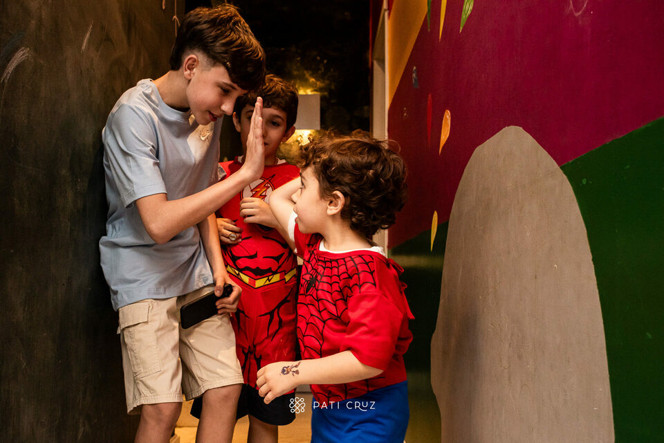 Aquele Caetano bebê que ainda engatinhava quando o conheci lá em 2021 deu lugar a um menino alegre e cheio de energia. Um Caetano que recebe seus convidados sorrindo e com abraços. Uma criança que, apesar da pouca idade, já aprendeu a aproveitar cada instante dos bons momentos da vida, e ao receber seus presentes, entrega instanteamente à sua mãe (ou ao adulto mais próximo, na ausência dela) e volta correndo para brincar, pois sabe que o momento de aproveitar a festa é agora, e os presentes poderão ser abertos depois. Um Caetano bom de garfo, que segurava um bambolê em uma mão e um pedaço de pizza na outra, para não perder nem a brincadeira, nem a comida. Um Caetano que adora pizza de calabresa, o único sabor que o vi comer dentre tantos que eram ofertados. Um Caetano fã do irmão mais velho, dos seus primos e dos heróis, e que ficou radiante com a chegada surpresa dos seus ídolos para a hora do parabéns.