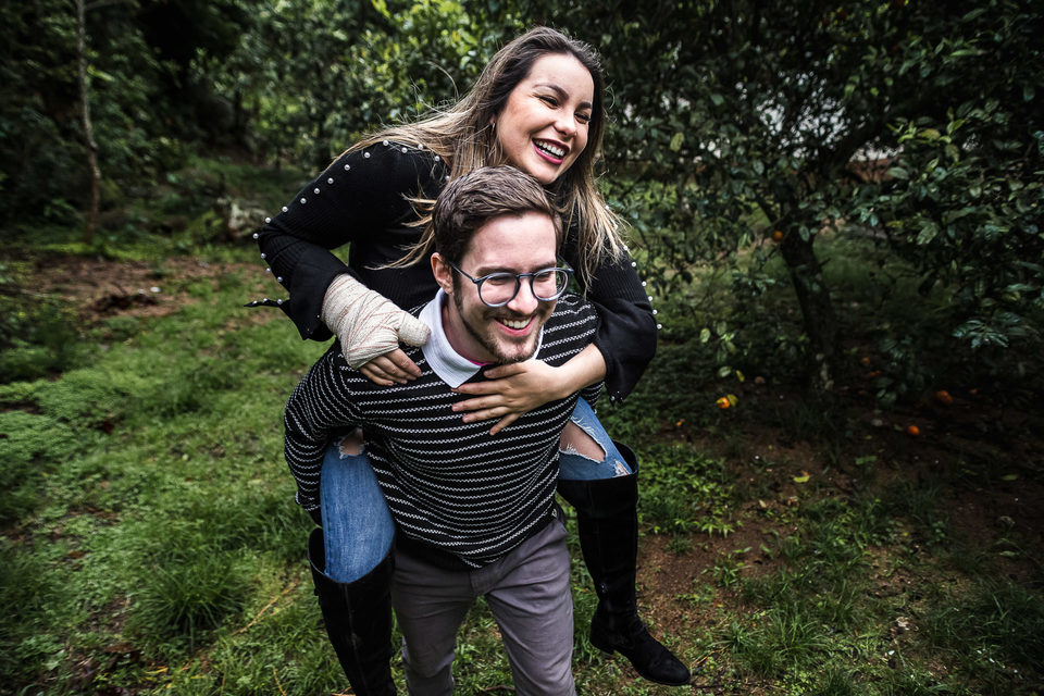 Muitas pessoas buscam as melhores condições para realizar seu ensaio fotográfico de casal: o dia perfeito, o local perfeito, a hora perfeita. Esse certamente não foi o caso da Dalu e do Duda. A Dalu quebrou a mão 1 semana antes de fazermos as fotos, mas eles fizeram questão de realizar o ensaio, mesmo com a previsão de chuva para o dia do ensaio e ela estando com a mão enfaixada, afinal, isso também é ter história para contar, não é mesmo? E o resultado não poderia ter sido mais autêntico, bem com a carinha desse casal tão querido!