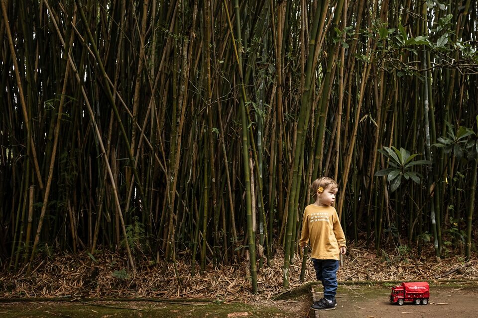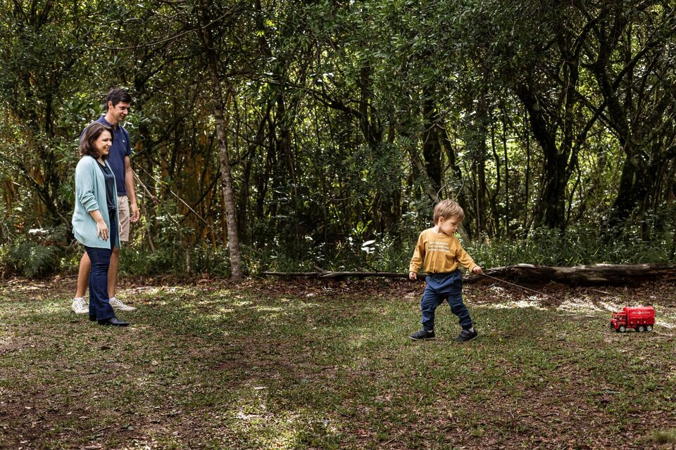 Os três anos do Antônio foram marcados com um lindo de família ensaio ao ar livre, e o local escolhido foi o Parque Gabriel Knijnik. O dia começou nublado, e com chance de chuva, o que amenizou o calor do verão de Porto Alegre. Todos os registros foram feitos de forma espontânea, com brincadeiras leves que os pais costumam fazer. Procurei fotografar a curiosidade do Antônio em explorar o lugar, o hábito dele de colocar o dedinho no umbigo quando está com soninho, as brincadeiras com o caminhãozinho que ele ganhou de aniversário e se tornou seu brinquedo preferido, e até mesmo o momento em que ele pediu para o papai colocar uma florzinha na orelha dele, do jeitinho como a mamãe faz quando ganha uma florzinha do Antônio.