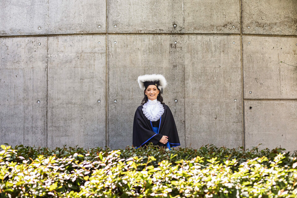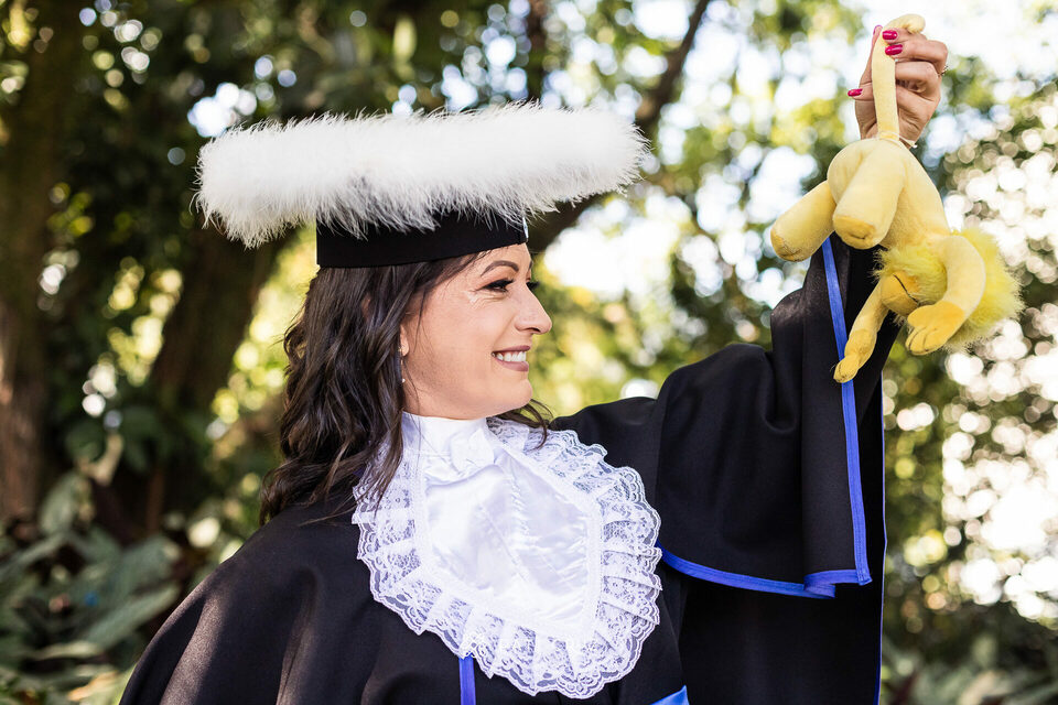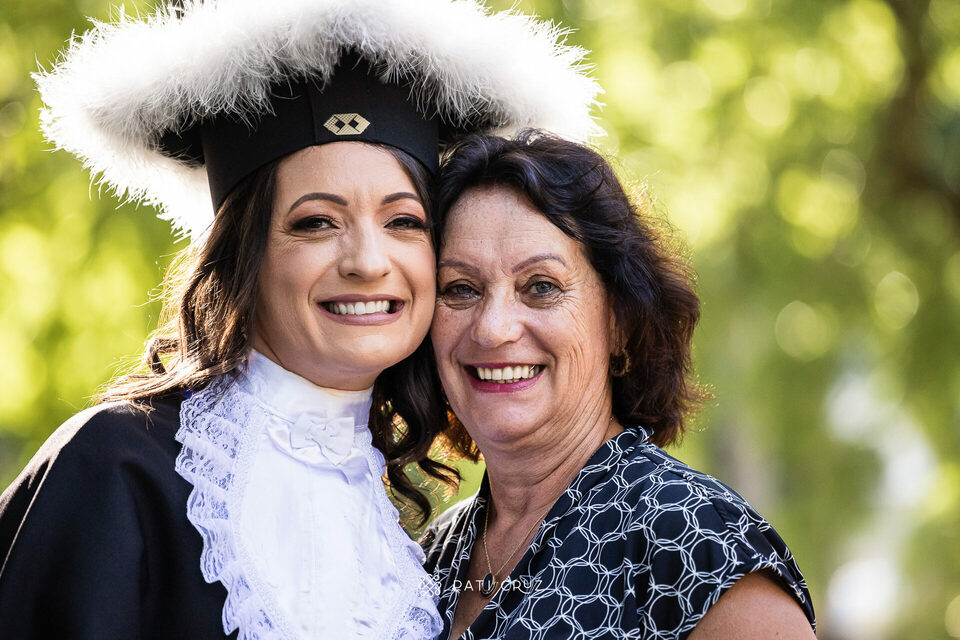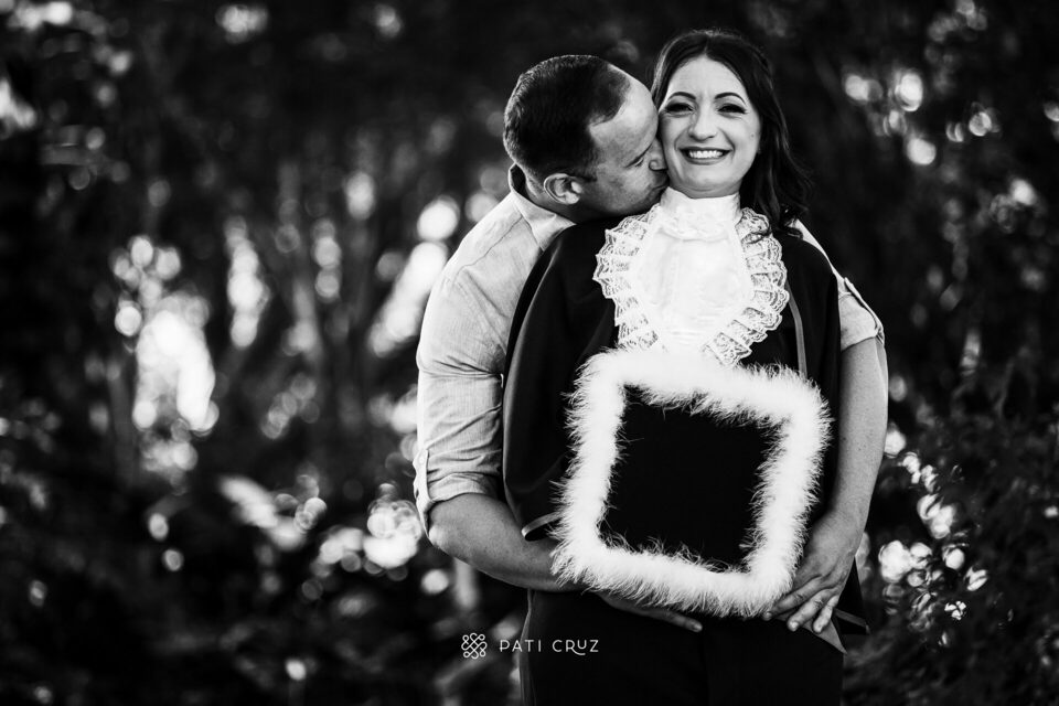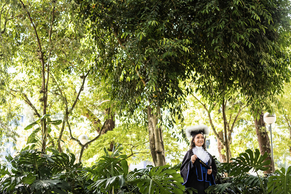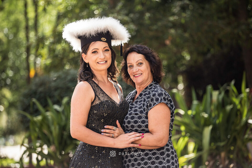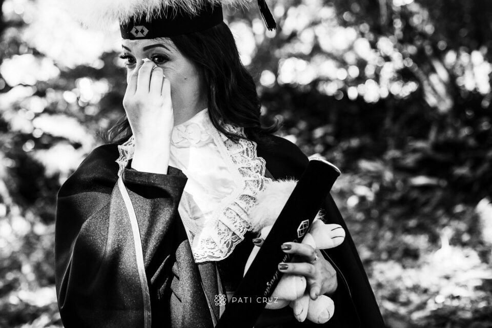 A Dianne se formou em gabinete, mas a cunhada dela não deixou o momento passar em branco e contratou um ensaio de formatura para presenteá-la. Fizemos o ensaio na PUCRS, com a participação da mãe da Di, do esposo e da enteada. O pai, que partiu pouco tempo antes, foi representado pelo macaquinho amarelo, presente de infância dado à filha. No momento desses registros, a formanda não conseguiu conter as lágrimas de saudade, mas também de orgulho pela grande conquista.