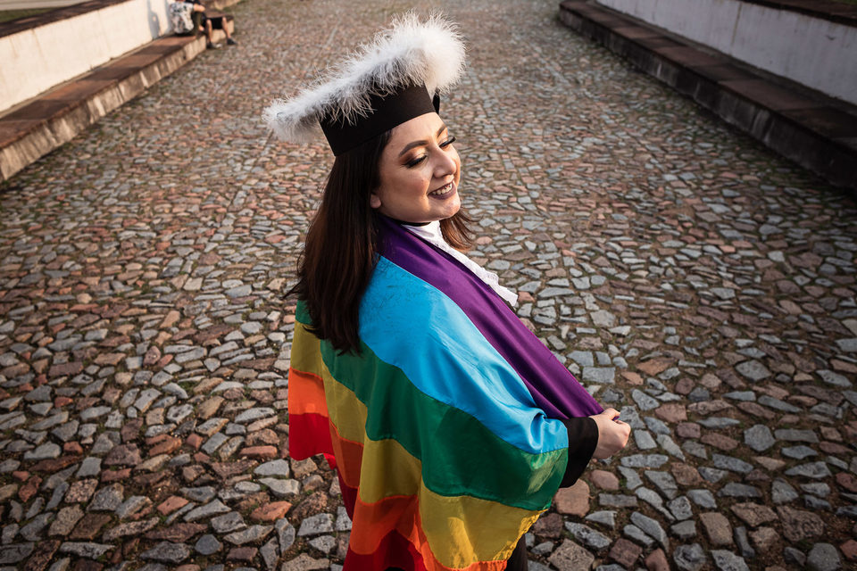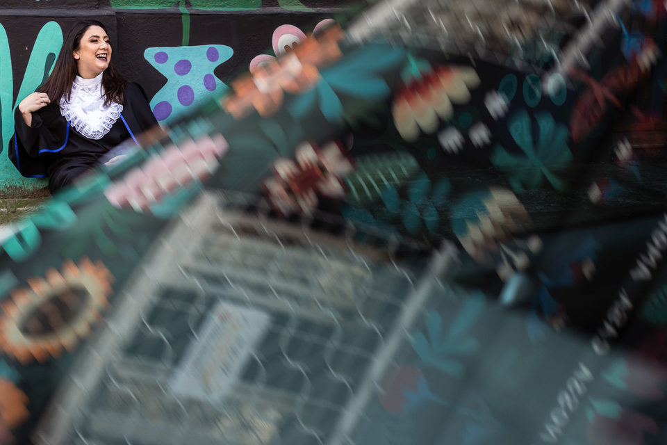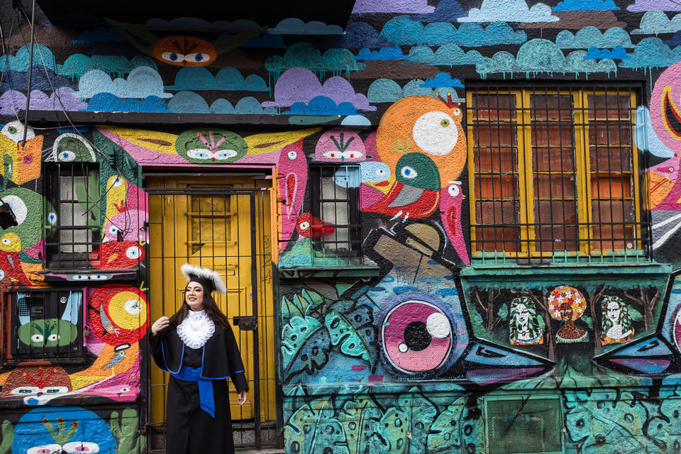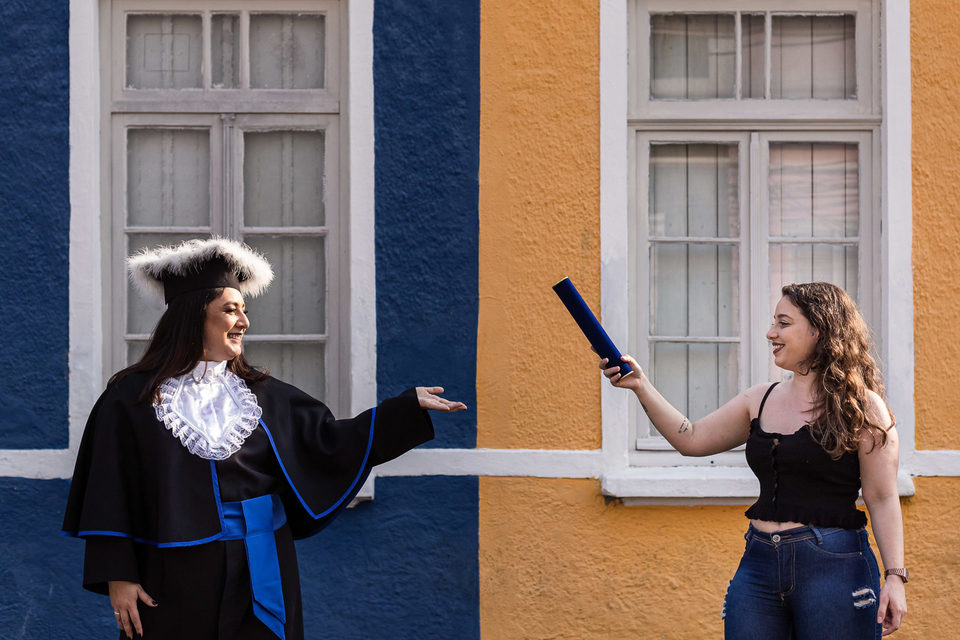 Sempre defendo que o ensaio tem que ter a cara do formando. A Fe é toda da CB e o ensaio de formatura dela não poderia ter sido feito em outro lugar! Começamos o ensaio na Travessa dos Venezianos, explorando a arquitetura e cores, depois fizemos alguns registros pelos grafites da cidade baixa de Porto alegre e finalizamos o ensaio junto a Ponte de Pedra, local que ela costuma frequentar com a namorada no dia a dia.