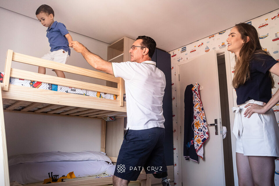 A Paula Mulazzani me procurou querendo fazer um ensaio que marcasse os 3 anos do irmão mais novo dela, o Maurício. A ideia dela era fazer um ensaio documental de família, que registrasse momentos deles com o pai de forma espontânea e descontraída. Decidimos fazer o ensaio em casa mesmo. Talvez daqui há uns anos eles não morem mais naquele apartamento, ou talvez o quarto do Maurício não tenha mais carros na parede. Talvez ele não se lembre que aos três anos era completamente apaixonado por meios de transporte sobre rodas, ou que ele andava de patinete na área externa do apartamento. Talvez ele não se lembre que na sala de casa havia um aparelho de som que tocava CD, e muito possivelmente, quando ele crescer, ele nem saiba exatamente o que é um CD, ou como faz para um CD "funcionar", mas esses registros simples daquela tarde em família guardam memórias importantes para eles. Em especial para o Maurício, que ainda é muito pequeno para lembrar desse dia no futuro.