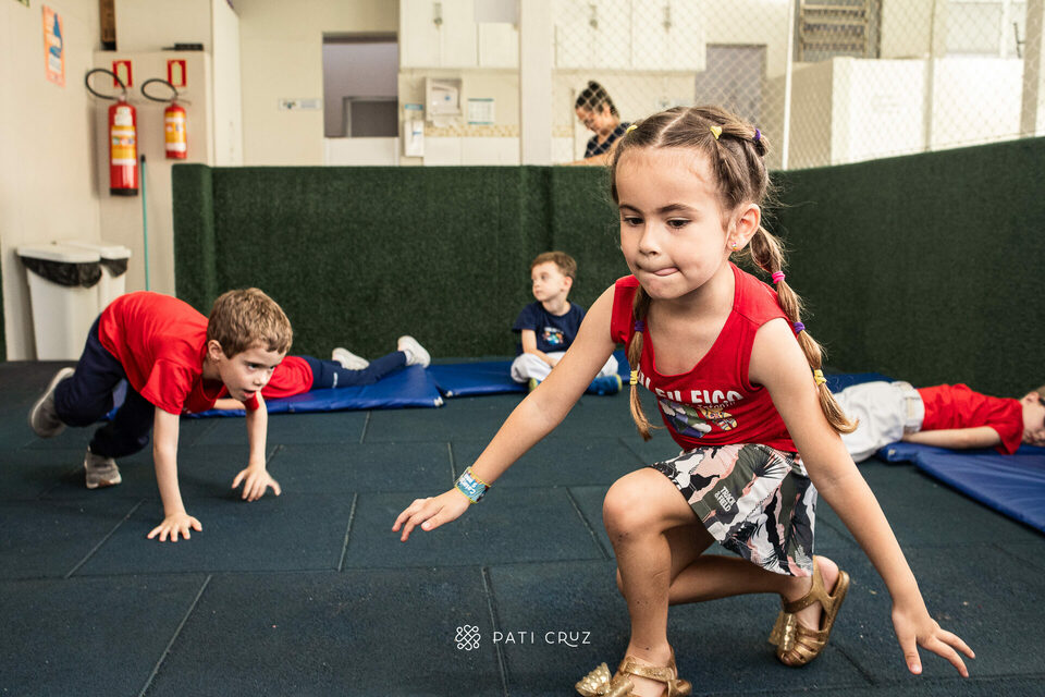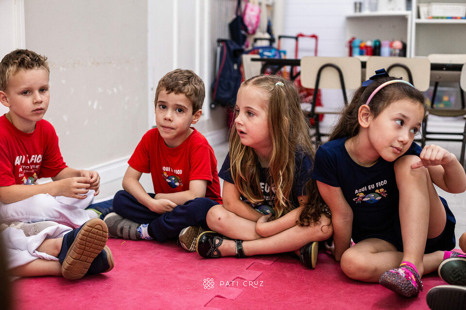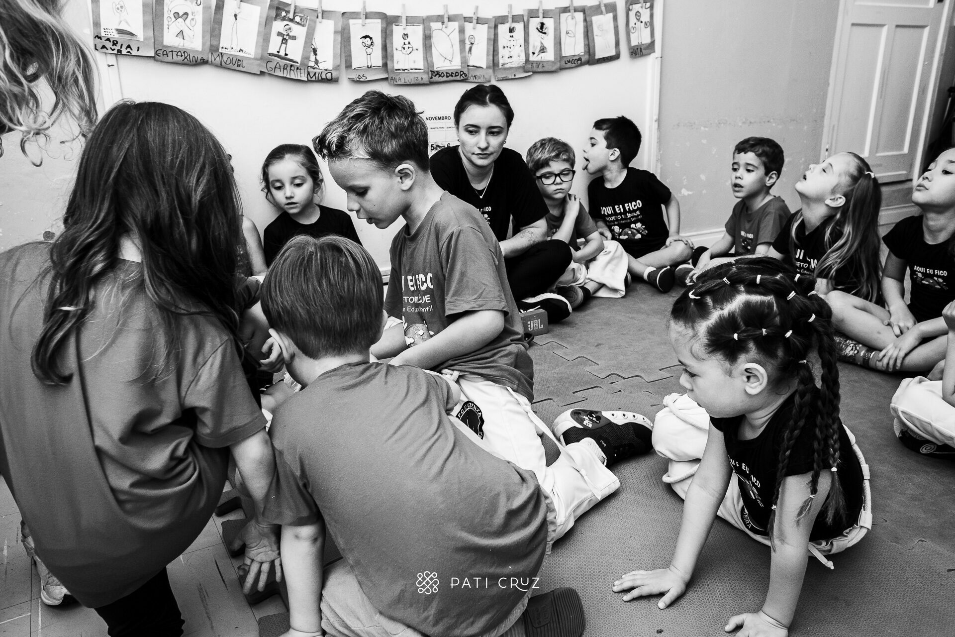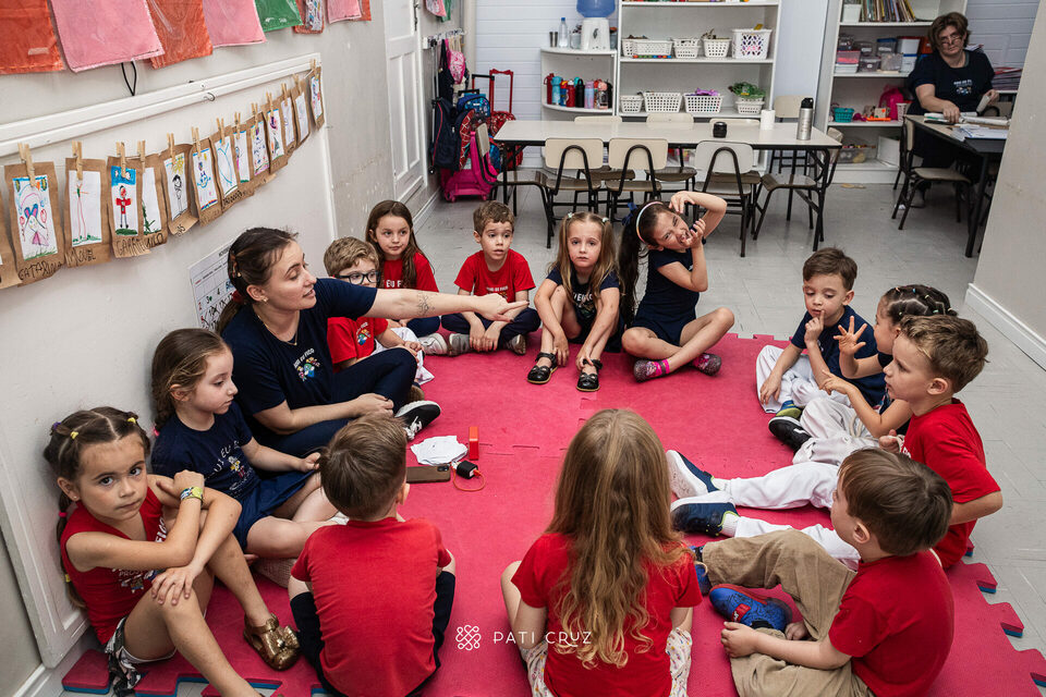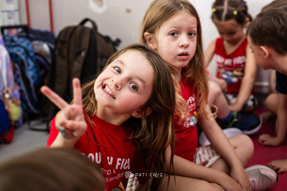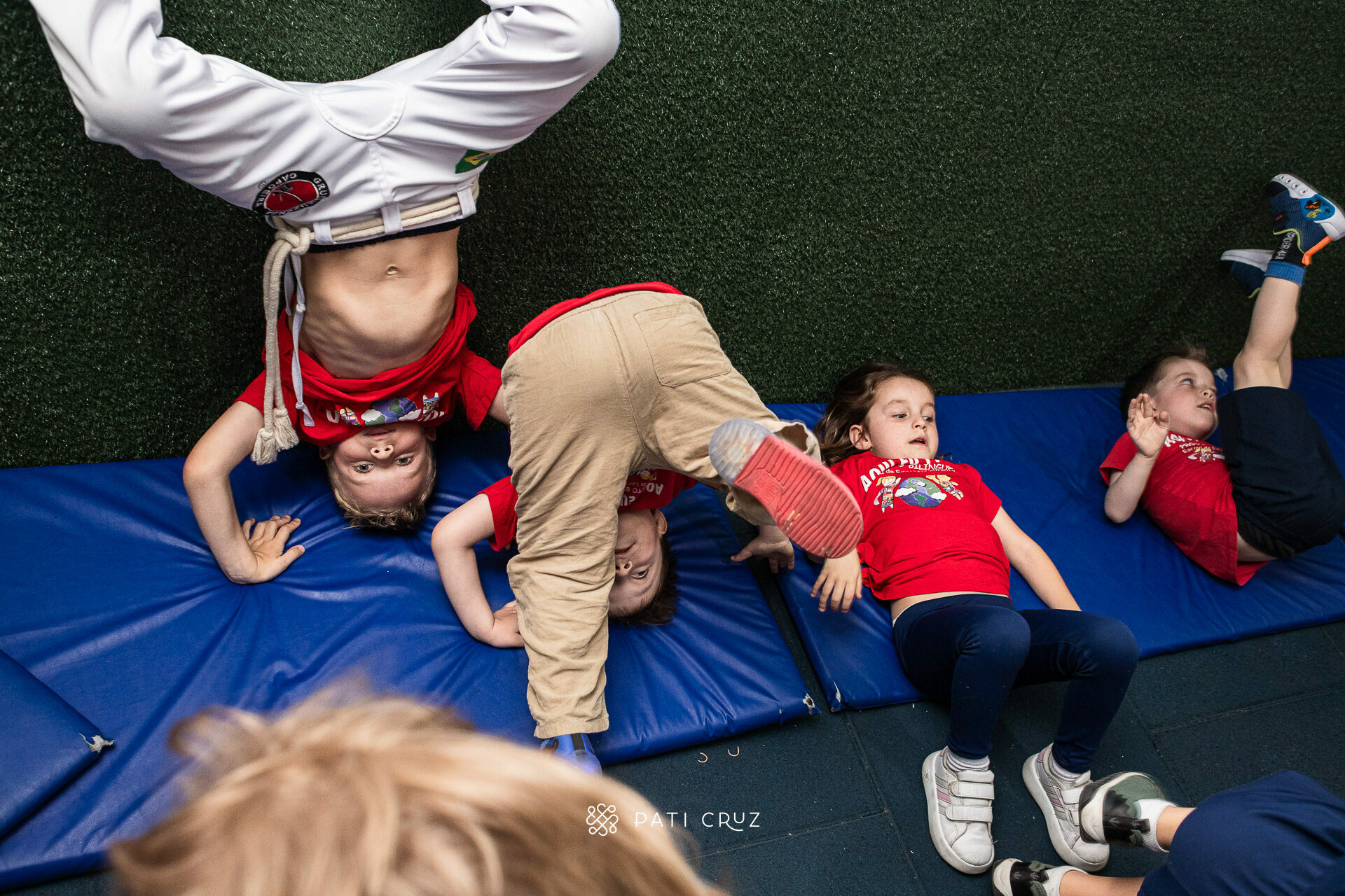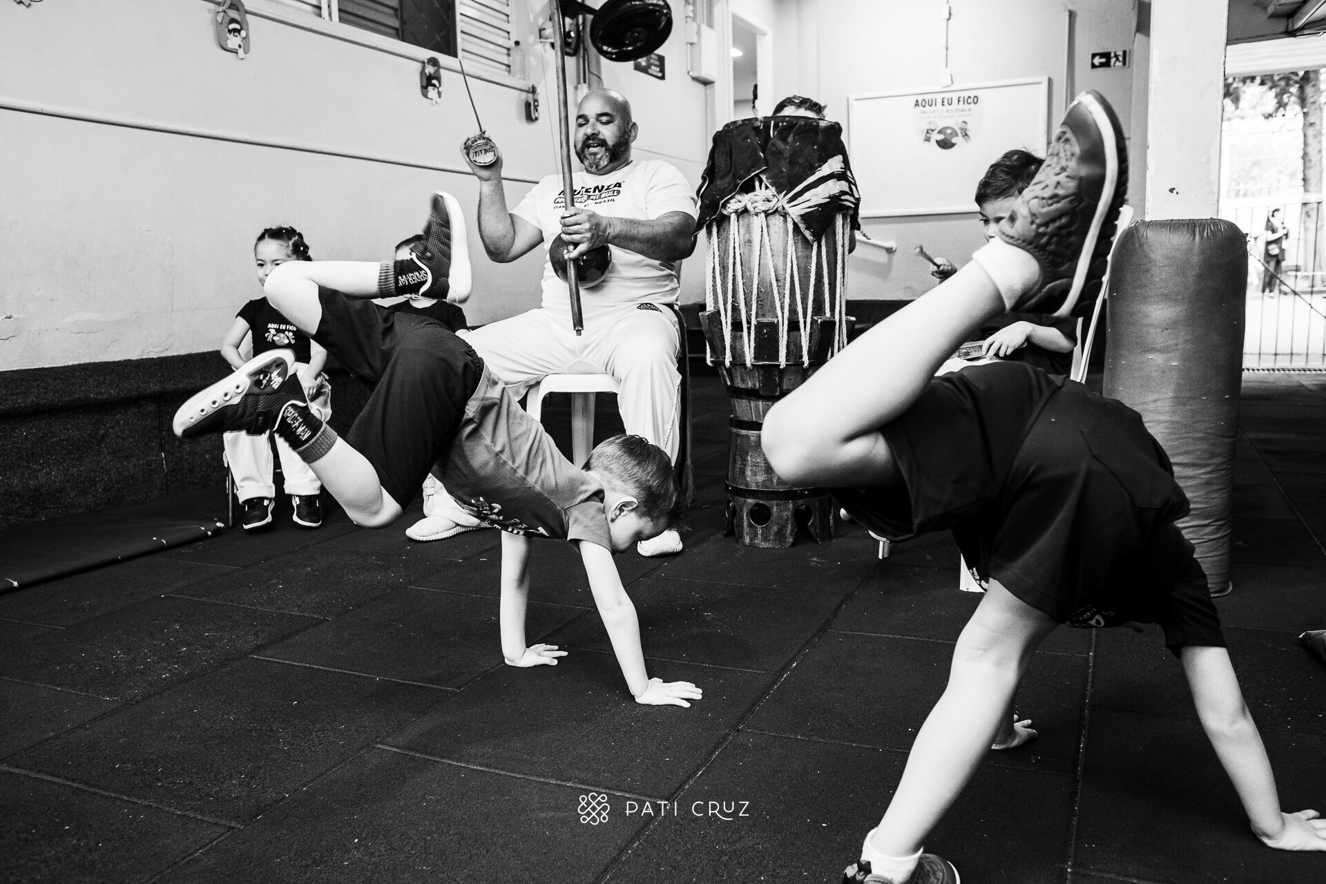 Logo depois, o som do berimbau tomou o espaço. Na aula de capoeira, corpos pequenos aprenderam a gingar, a se equilibrar, a ouvir o ritmo. Foi um momento de tradição e o movimento criaram uma roda de cultura e brincadeira.