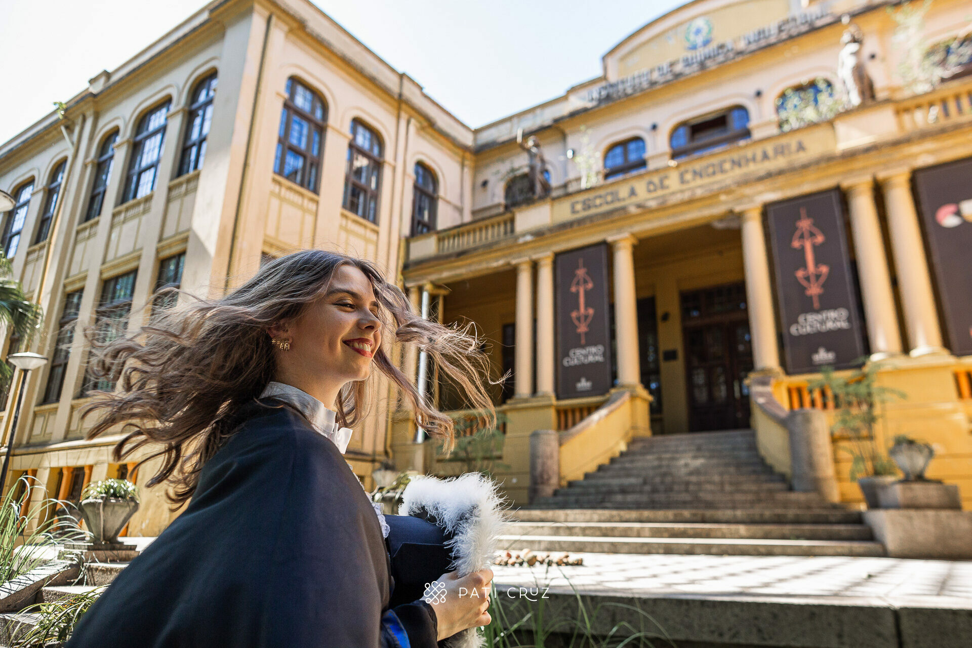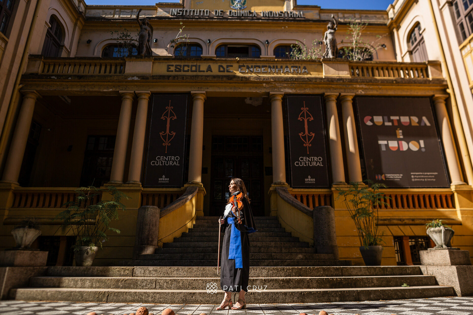O resultado foi um conjunto de imagens que traduzem elegância, emoção e autenticidade. Mais do que registrar a formatura, o ensaio na UFRGS eterniza o encontro entre música, arquitetura e luz. Confira!