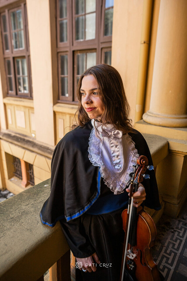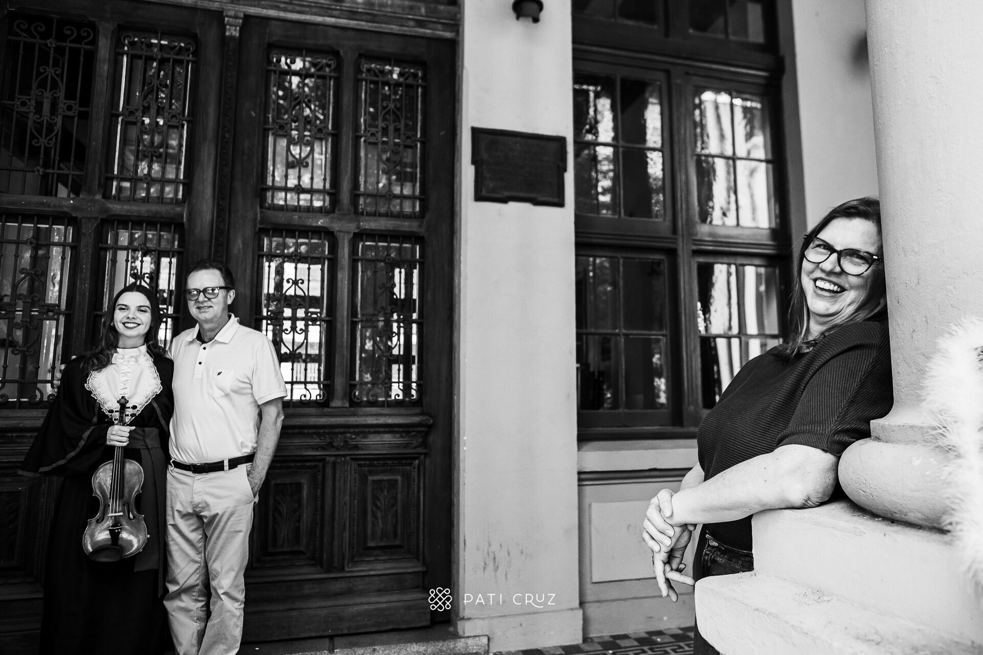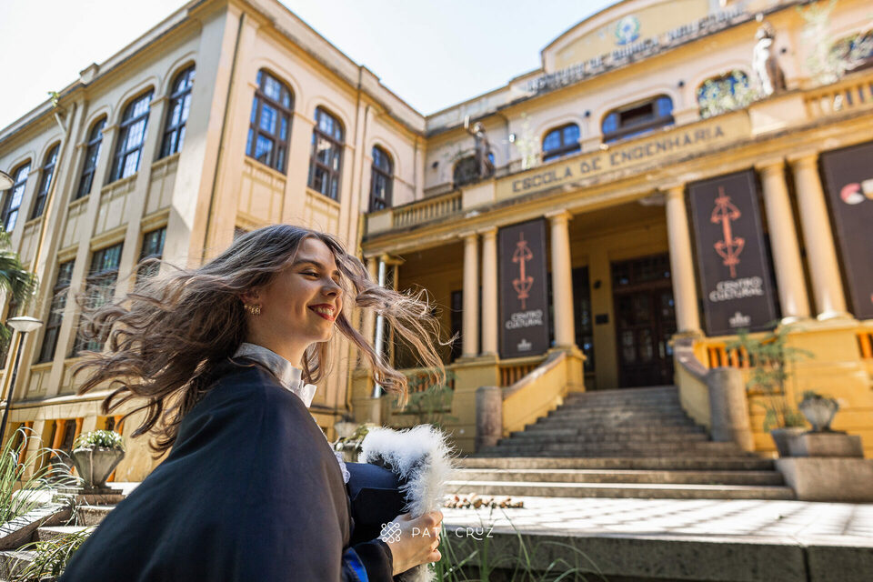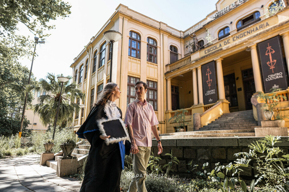 Escolhemos a UFRGS não apenas como cenário, mas como personagem. Entre árvores centenárias, corredores históricos e salas que já receberam incontáveis melodias, a formanda reviveu parte de sua trajetória acadêmica. Do som dos pássaros nas árvores ao som do violino, foi um fim de tarde incrível!