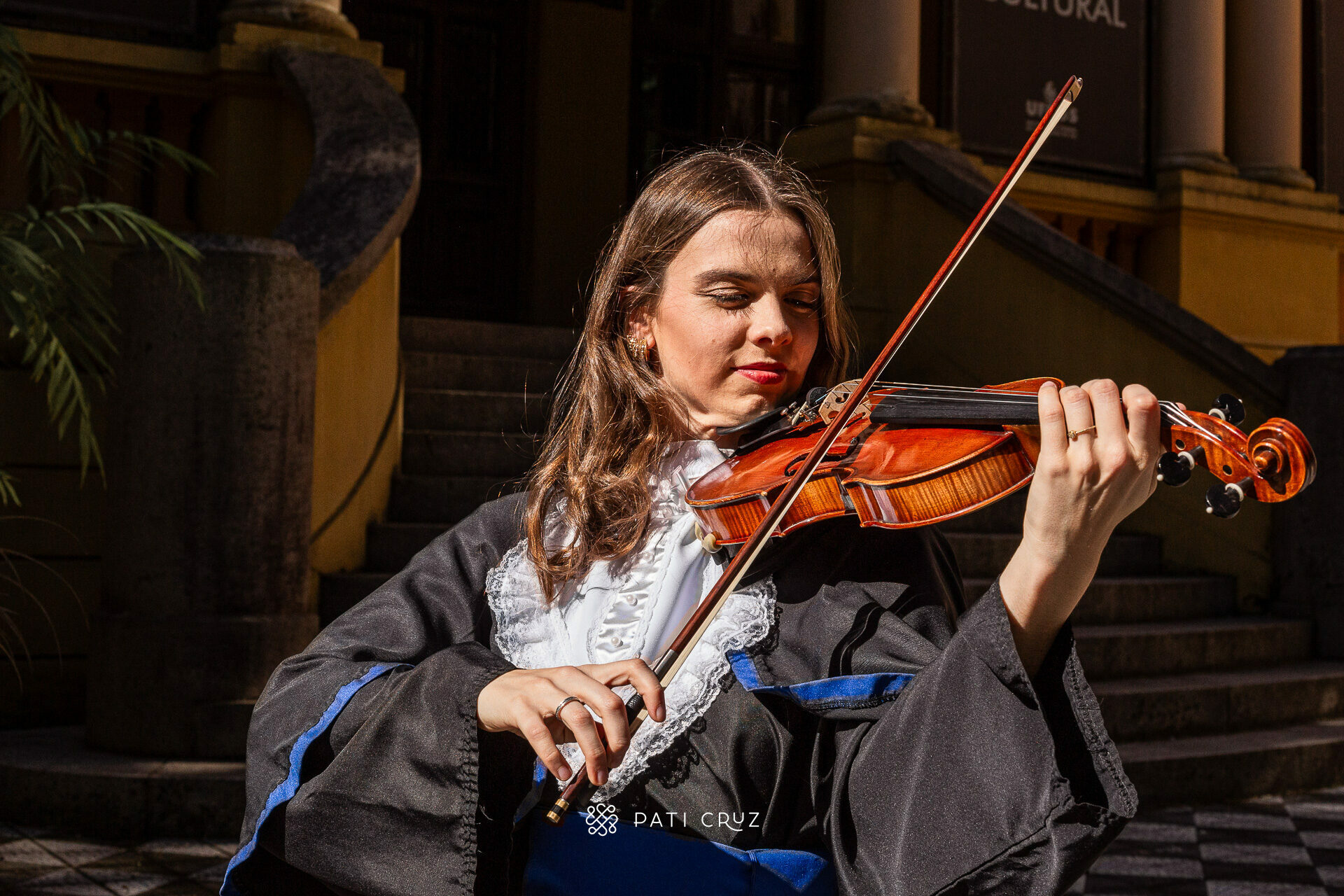 Há ensaios fotográficos que vão além da estética: eles carregam som, história e identidade. Assim foi o ensaio de formatura realizado no campus da UFRGS com a Maiara, aluna concluinte do curso de Música e apaixonada pelo violino.