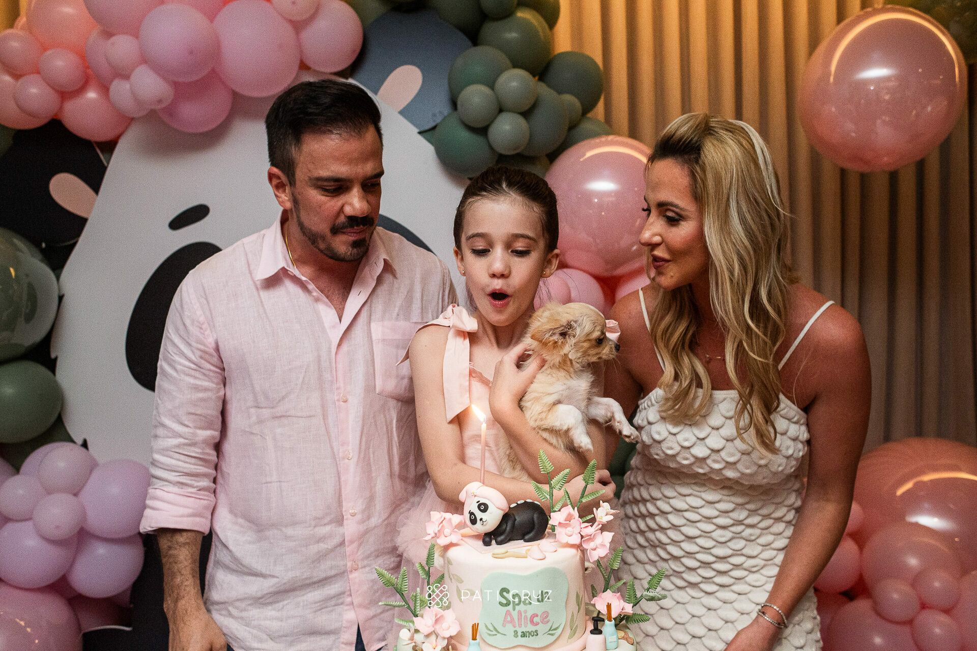 Teve produção de spa, confecção de pandas de pelúcia e, claro, o momento especial do parabéns. Por fim, a cobertura com o tradicional balão surpresa, que sempre rende cliques incríveis e expressões inesquecíveis!