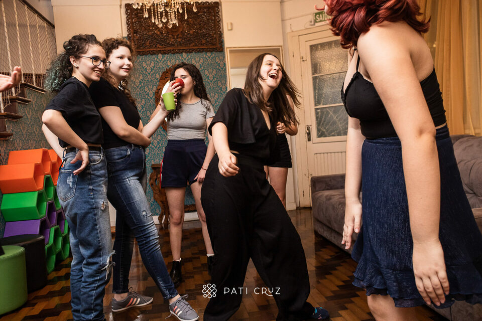 Fui procurada para registrar a festa de 15 anos da Gabi em Porto Alegre, mas logo de cara já me alertaram "essa será uma festa diferente". A Gabi não é daquelas gurias tradicionais, que sonha com uma grande festa, com vestidão e baile. Definitivamente não! Ela é daquelas gurias que sabe aproveitar a vida se divertindo, e que aproveita cada instante com os amigos. Aos 5 anos ela havia comemorado o aniversário na Casa Alegre, e a festa marcou tanto que ela quis repetir a dose. Legal que os pais da Gabi super respeitaram o desejo da filha e fizeram a festa de 15 anos do jeitinho que ela quis.