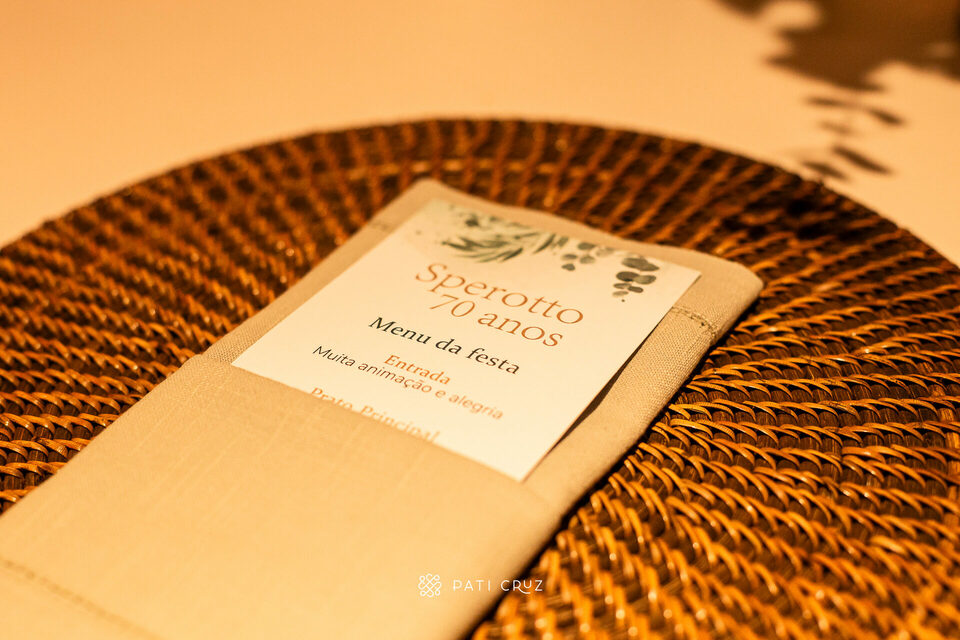 Uma festa alegre, com um astral leve, cheia de risos e boas conversas entre amigos e familiares. Assim José Sperotto comemorou o seu aniversário de 70 anos, no salão do condomínio onde mora, em Eldorado do Sul. Bons drinks e chopp bem gelado amenizavam o calor daquela noite de dezembro. A decoração montada pelos próprios familiares estava linda e foi pensada nos mínimos detalhes! No menu da festa dizia "entrada: muita animação e alegria", o que de fato não faltou! Sperotto dividia-se, dando atenção a todos os convidados. Após o discurso e o parabéns, a pista de dança foi aberta pelo anfitrião, ao som de um animadíssimo pagode ao vivo, e a festa seguiu noite a dentro.