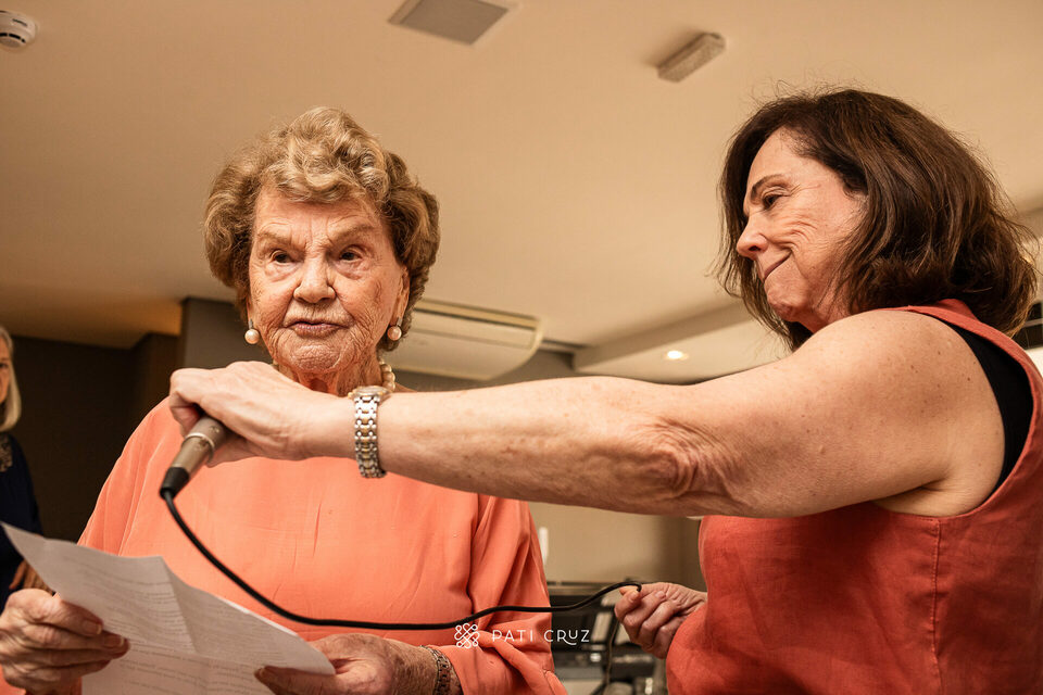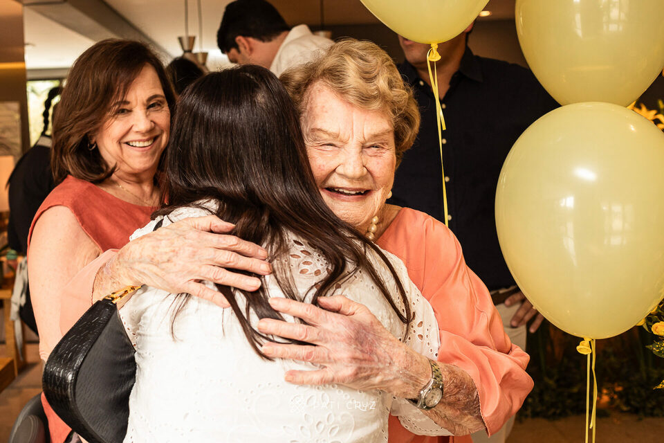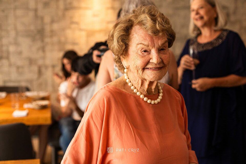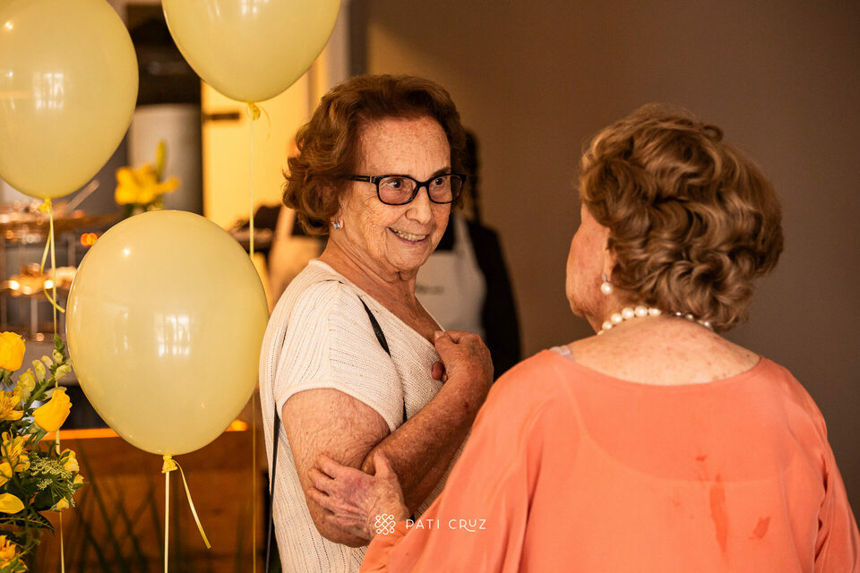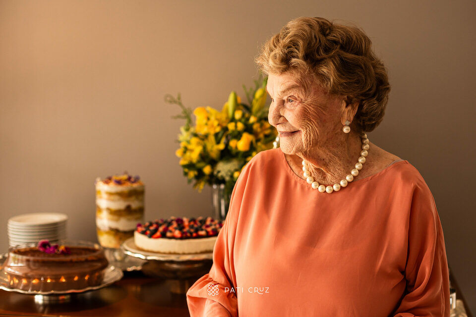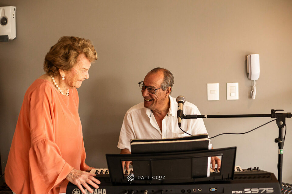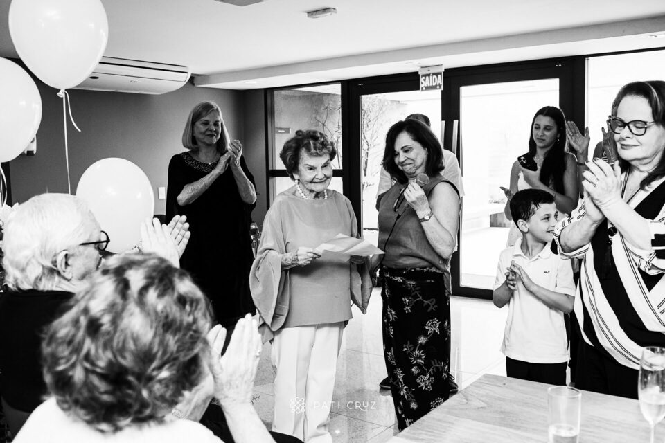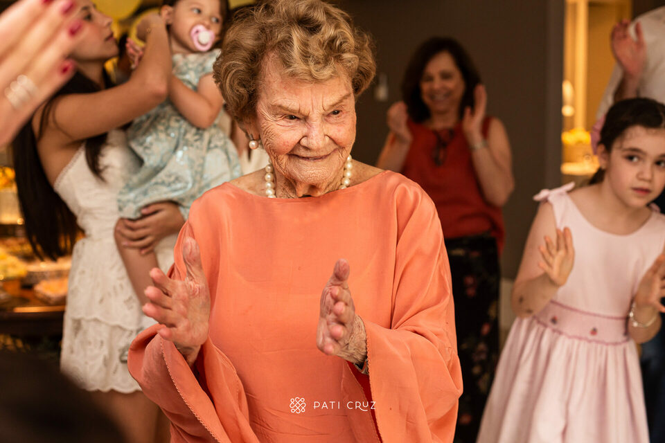 Fui recebida pela aniversariante com um sorriso no rosto e muita doçura no olhar, do mesmo modo que ela recebeu todos os convidados, um a um. A festa foi leve e fluida, com uma playlist de músicas muito agradáveis tocadas ao vivo por um senhor que é professor da dona Flora há 30 anos.
