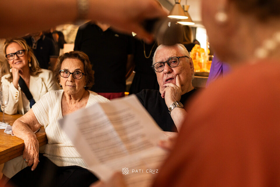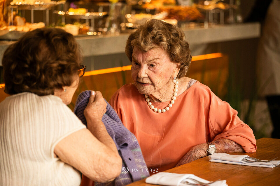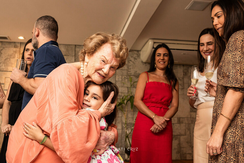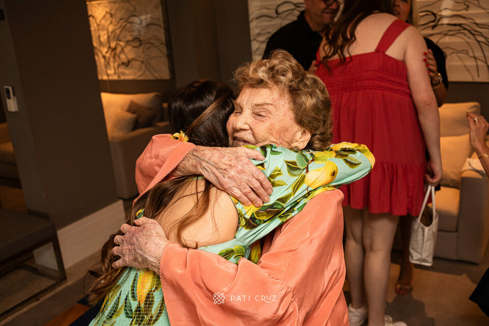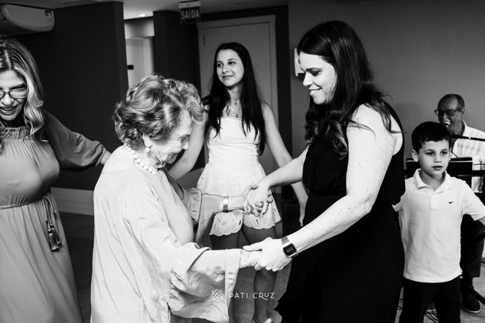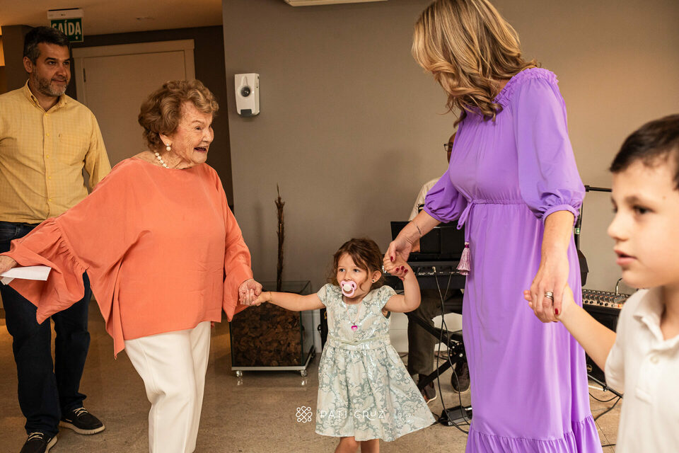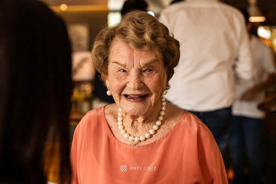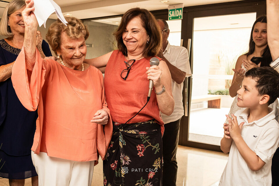 Fui recebida pela aniversariante com um sorriso no rosto e muita doçura no olhar, do mesmo modo que ela recebeu todos os convidados, um a um. A festa foi leve e fluida, com uma playlist de músicas muito agradáveis tocadas ao vivo por um senhor que é professor da dona Flora há 30 anos.