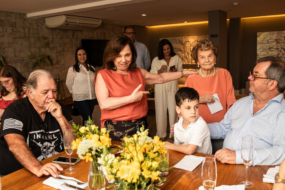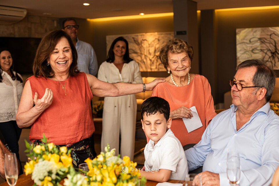 Na fala da Rosane (filha da aniversariante) em agradecimento a presença de todos, fiquei sabendo que toda sexta-feira eles se reúnem para uma refeição em família. Me lembrei da minha infância, quando almoçavamos todas as segundas na casa da minha avó. Me veio a tona tantas lembranças boas daquele tempo, que consegui imaginar a alegria que é para essa família ter esse convívio semanal.