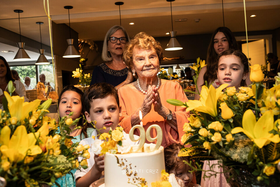 No último sábado registrei, pela primeira vez na vida, uma festa de 99 anos. Dona Flora, uma senhora quase centenária, esbanja saúde física e mental. Não sei qual o segredo de tal longevidade, mas vi uma famíllia unida, presente, cuidadosa e carinhosa com a matriarca da família, e tenho certeza que eles tem papel fundamental nessa vida tão longeva.