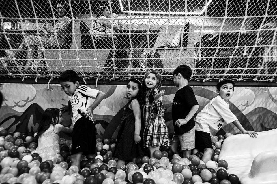 À medida que os convidados foram chegando, seus amiguinhos e amiguinhas já corriam para brincar, explorar o espaço no pula-pula e váriso outros brinquedos, e quanto todos eles brincaram, mesmo!