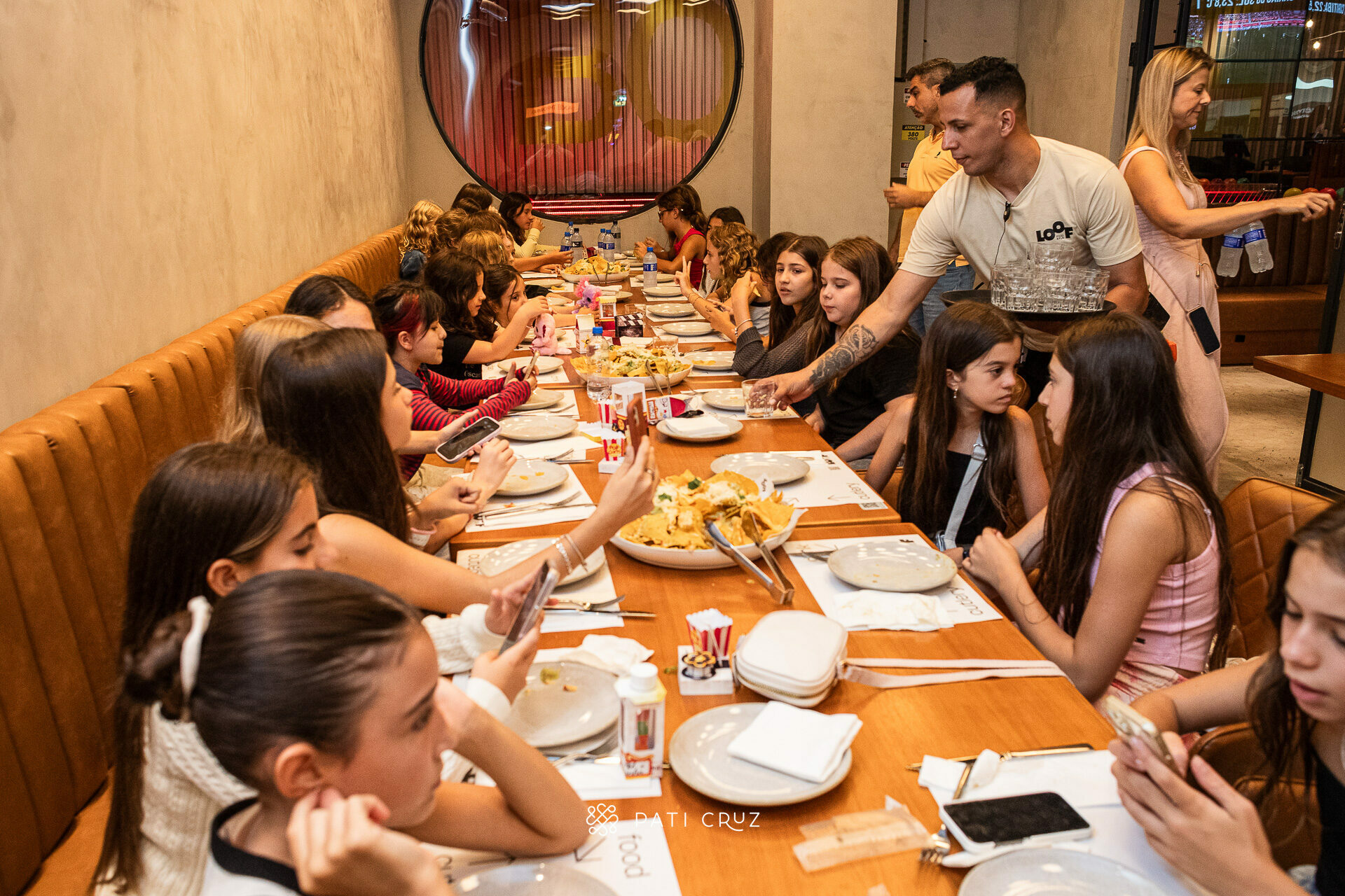 A comemoração começou de um jeito diferente: todas foram juntas ao cinema. Depois da sessão, seguimos para o Espaço Loof, onde elas almoçaram, conversaram, riram muito e aproveitaram cada momento desse encontro tão esperado.