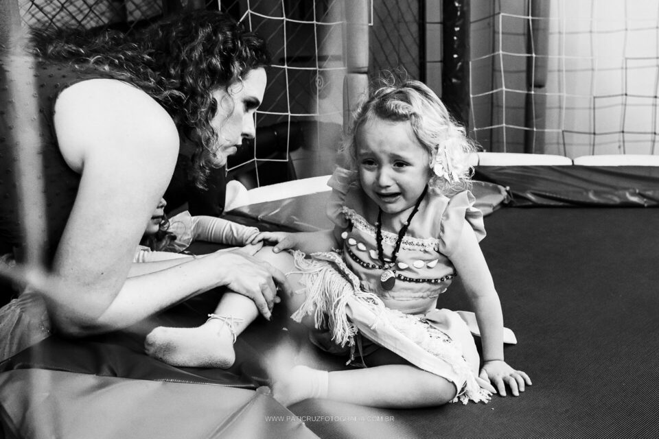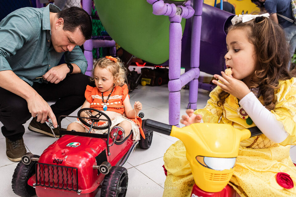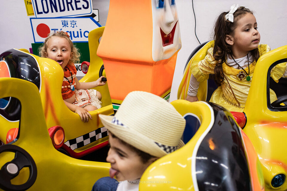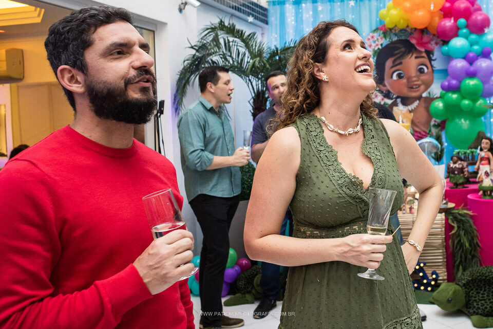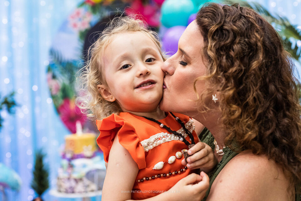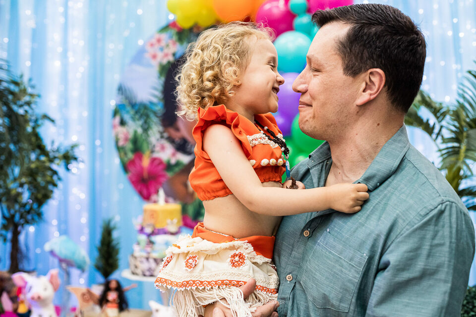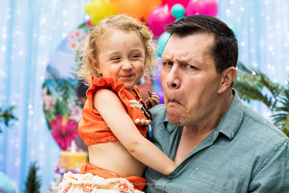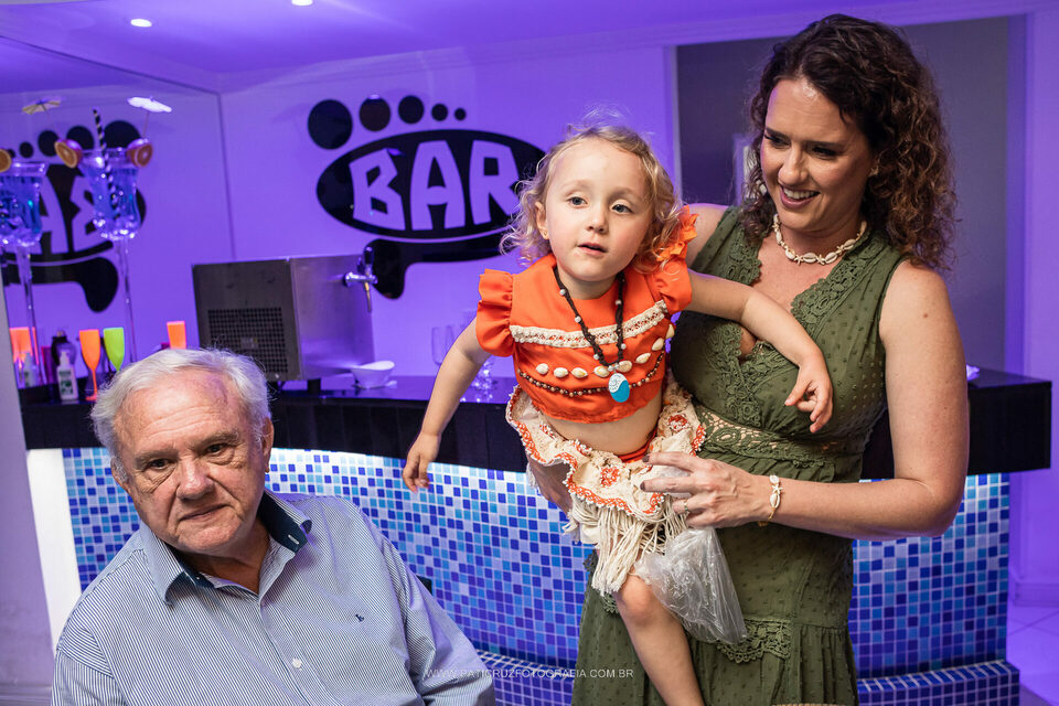 A festa de 3 anos dela foi a primeira festa grande que ela teve, e os pais escolheram como local para comemorar a casa de festas Mr. Bimbo, em Porto Alegre. O tema da festa foi escolhido pela própria Sofia e, ao meu ver, não poderia estar mais adequado à fase que ela está vivendo no momento: Moana, um mar de aventuras. A aventureira Sofia explorou cada cantinho da Mr. Bimbo e desafiou seus próprios limites. Caiu no tombo legal que deve ter umas 3x a altura dela (e adorou tanto que correu para ir de novo) e subiu no ponto mais alto do brinquedão que vai até o teto, de onde conseguiu ver a festa de cima e abanar para a mamãe Raquel, que orgulhosa olhava sorrindo para a filha lá longe. Pulou tanto na cama elástica que bateu o joelho e algumas lágrimas escorreram, mas nada que uns beijinhos, um colinho dos avós e um punhado de gelo não resolva, e em poucos minutos ela já estava correndo alegre novamente.