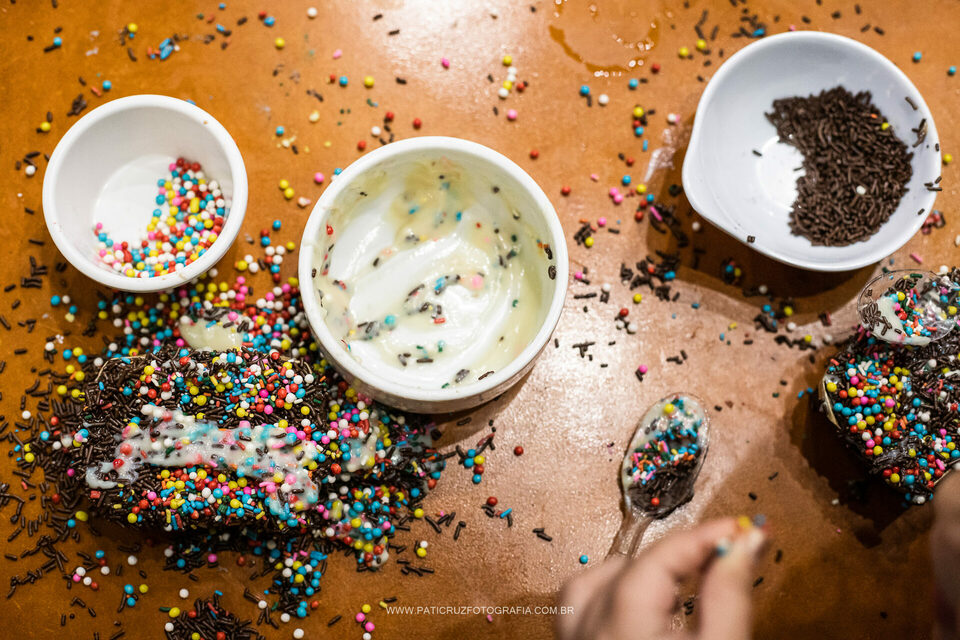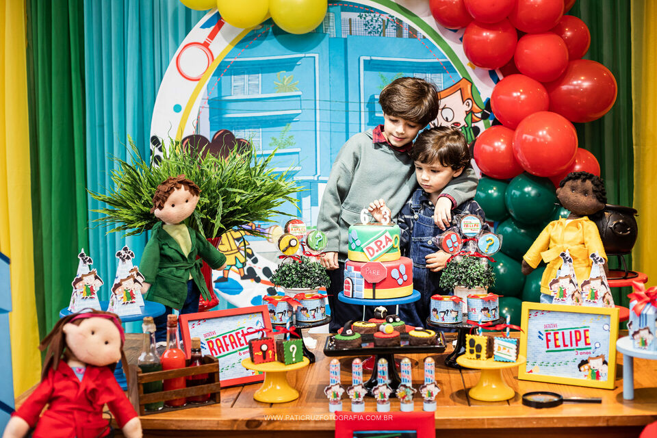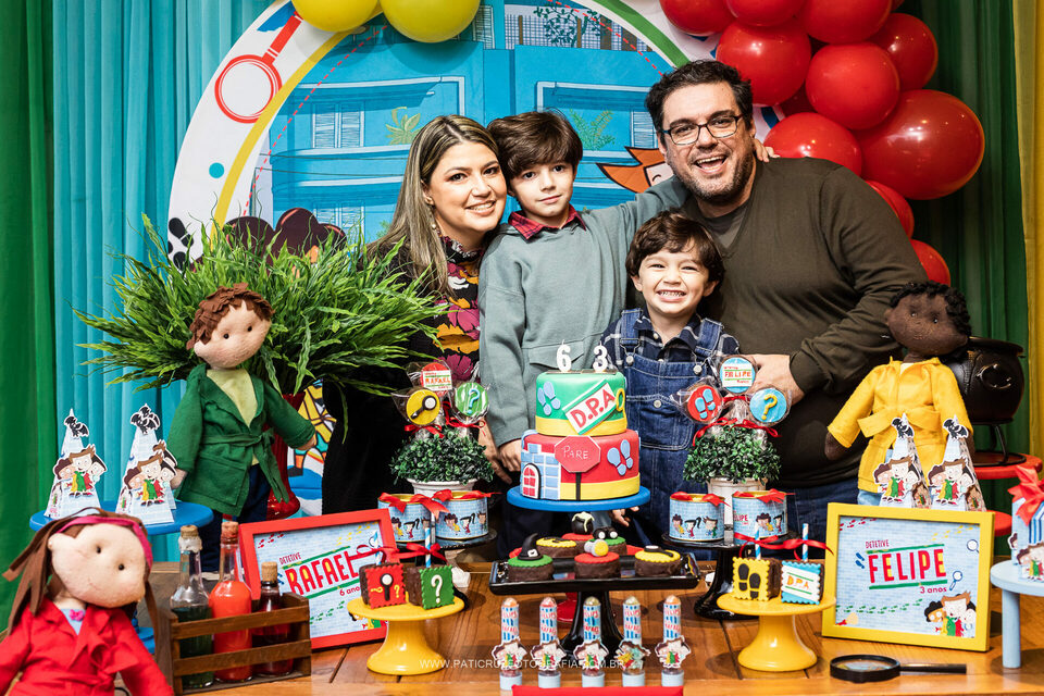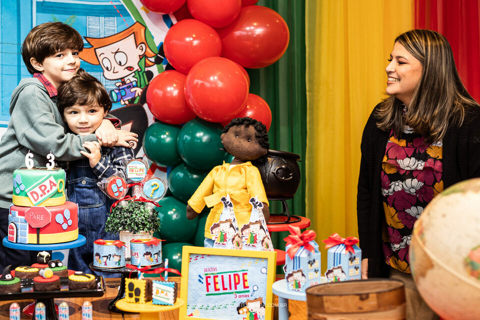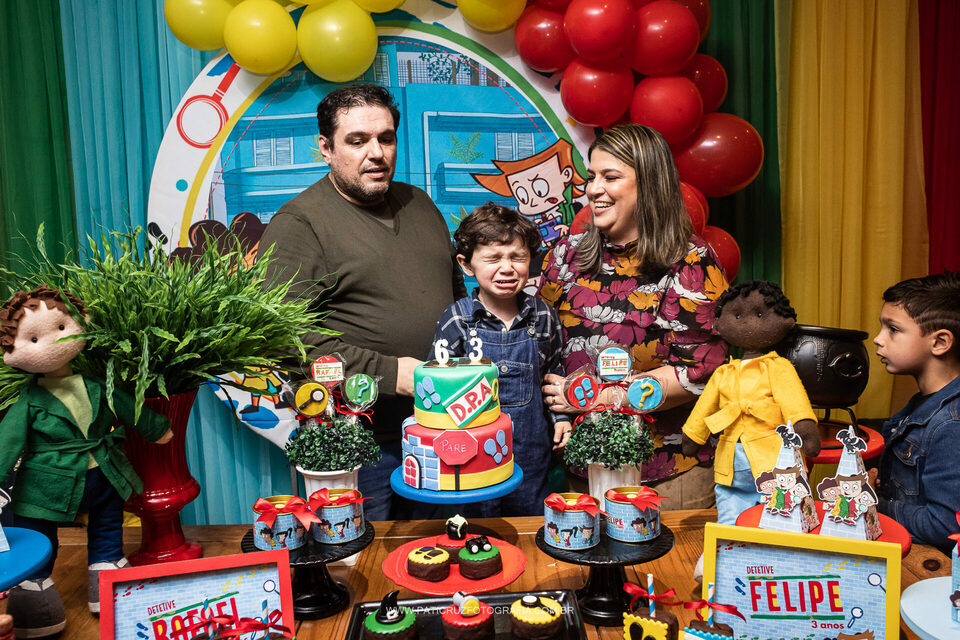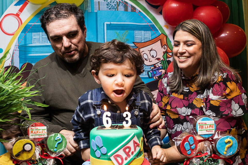 Sempre que fotografo festa de irmãos é um desafio fazer os registros, pois tenho que me dividir e estar o tempo todo registrando um pouquinho cada um, afinal, ambos são protagonistas dessa história! Mas deu tudo certo, e consegui pegar momentos bem legais e inusitados, como a cantoria dos dois no microfone e a birra do Lipe no parabéns porque o Rafa apagou a vela dele.