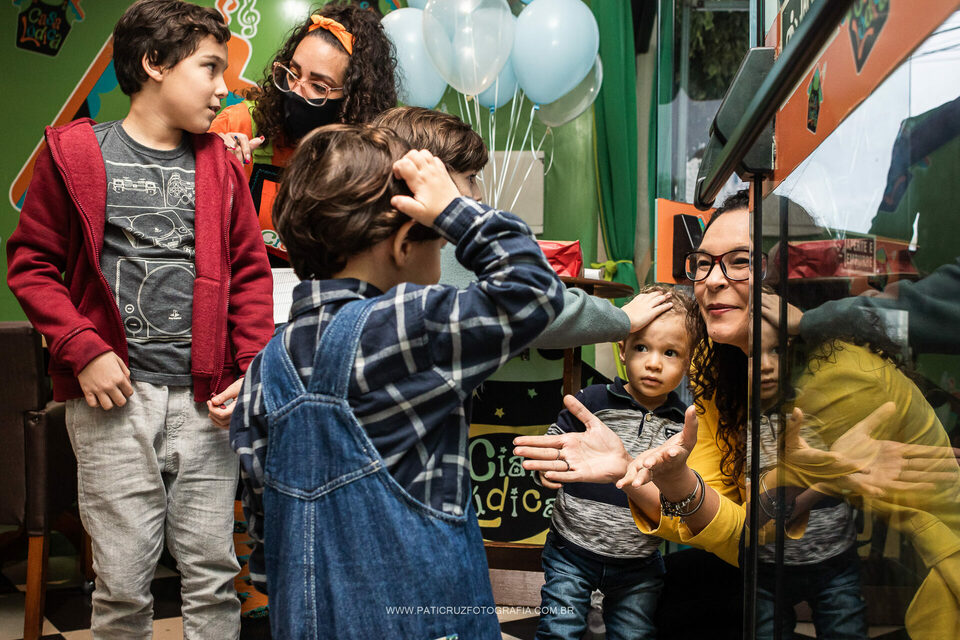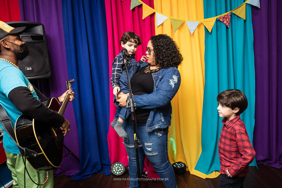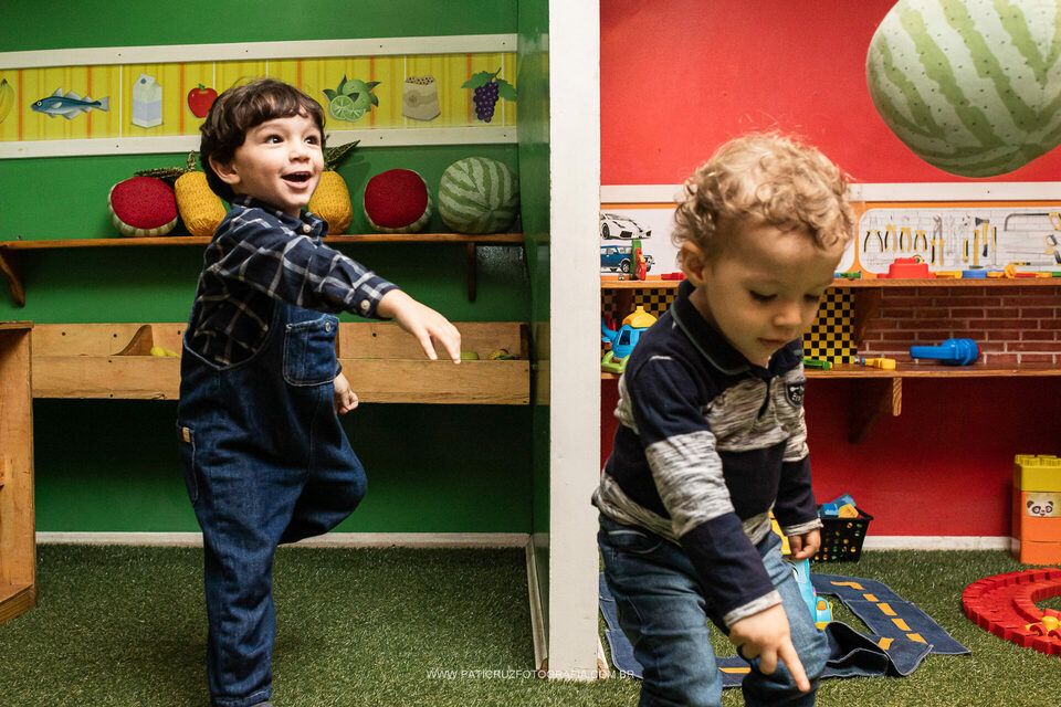 Acompanho essa família querida desde os 2 aninhos do Rafa, então essa foi daquelas festas que chego já me sentindo em casa. O Rafa é um guri super alegre, tagarela e de bem com a vida. Já o Lipe é genioso pra caramba, daquelas crianças determinadas, mas não menos querido que o irmão mais velho. O local escolhido para a festa não poderia ser mais adequado para essa duplinha que adora música: a Casa Lúdica.