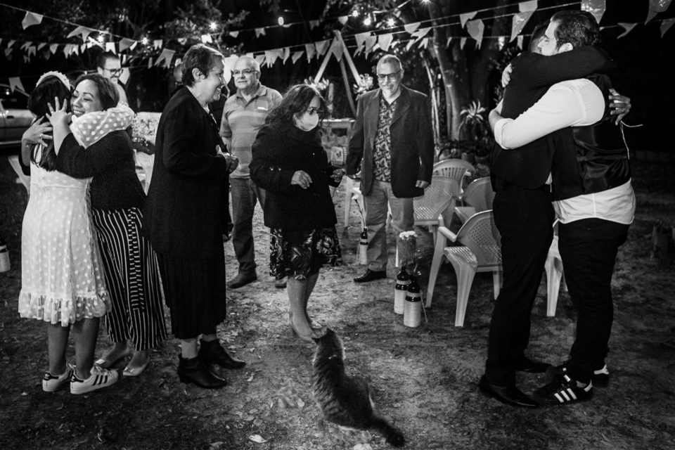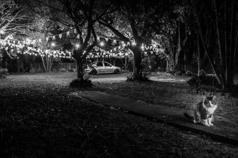 Fui escolhida pela Raquel e pelo Luccas justamente por ter um trabalho documental, que era o que eles buscavam, e registrei o dia do casamento deles do início ao fim... Mas eu não estava sozinha nessa! Joaquim, o gatinho de algum vizinho próximo, sempre aparece quando a família está no sítio, e no dia do casamento não foi diferente. Ele acompanhou o casório do início ao fim.