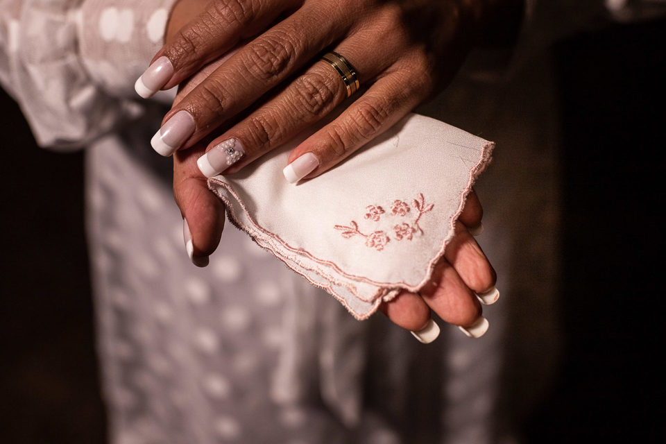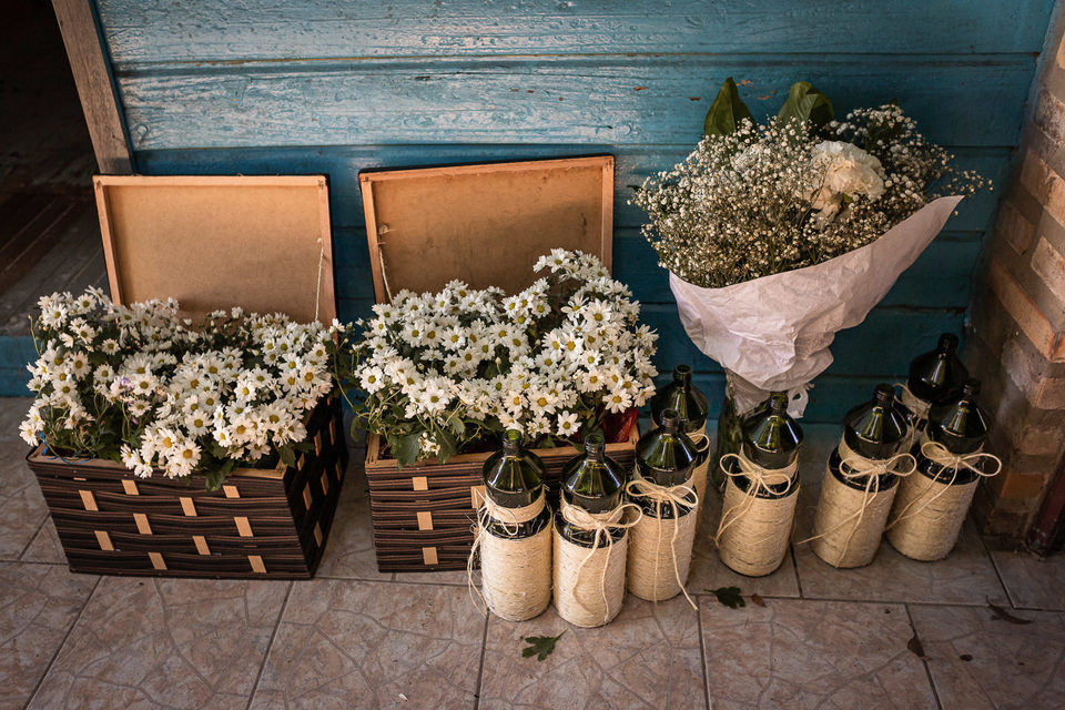 Com tenis novo no pé, eles casaram no sítio da família do Luccas, somente com a presença dos parentes mais próximos, e absolutamente tudo foi organizado e executado pelo casal e seus familiares. Quem pôde foi cedo para o sítio ajudar na organização do espaço e montagem da decoração. A cerimônia batista foi celebrada pelo pastor da igreja, amigo íntimo da família, juntamente com o pai da noiva. Passado esse momento, todos arregaçaram as mangas e ajudaram a transformar o espaço, afastando as cadeiras e trazendo os comes e bebes.