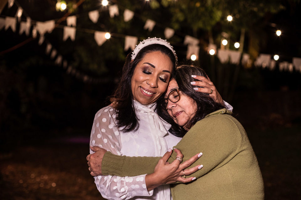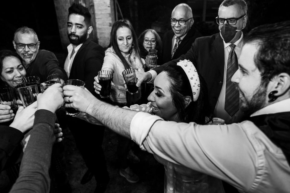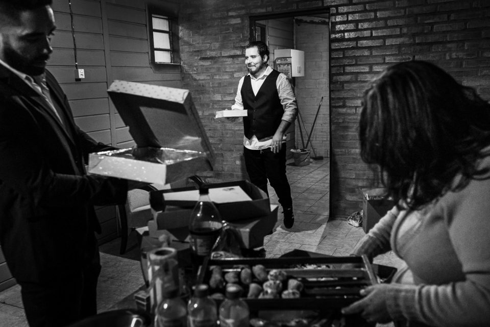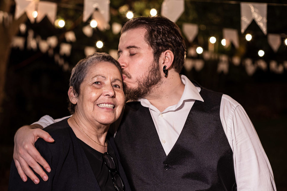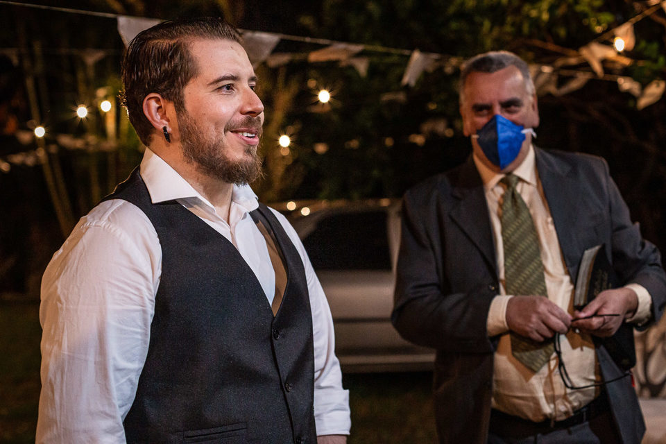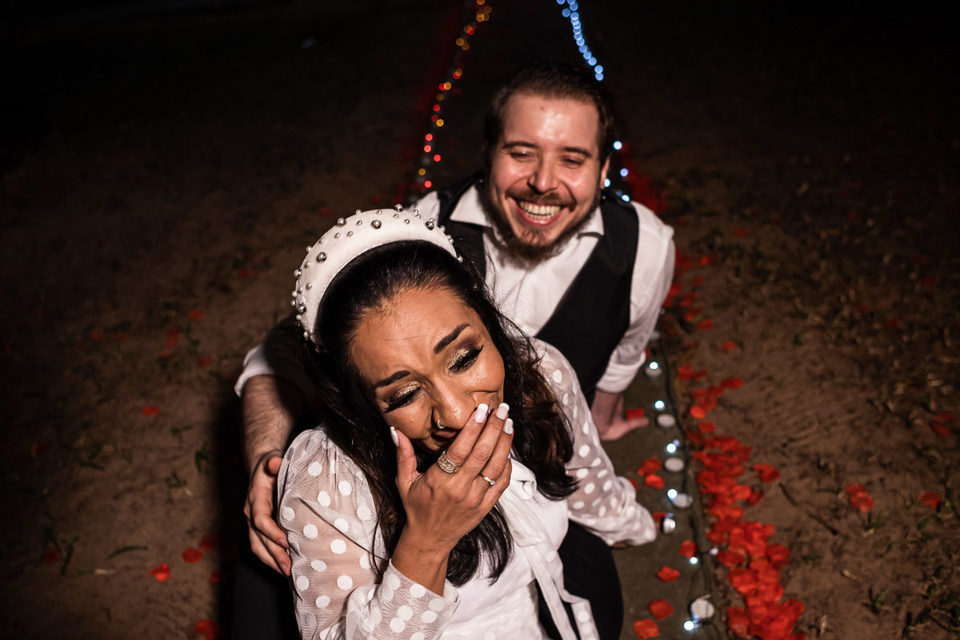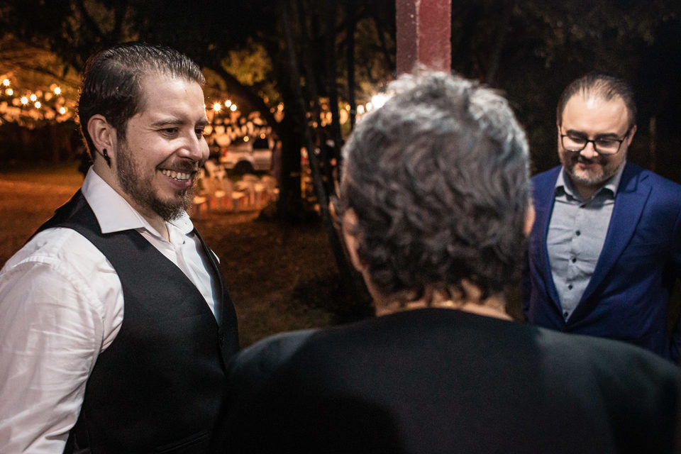 A comemoração seguiu com musica ao vivo tocada pelos irmãos e cunhado da noiva. A avó do Luccas prestigiou tudo da varanda da casa, bem agasalhada e protegida do sereno. Quando a festa terminou, novamente a família (de fé!) ajudou o casal na organização do espaço, recolhendo as luzinhas, guardando doces e salgados e carregando os móveis de volta para dentro de casa antes de irem embora.